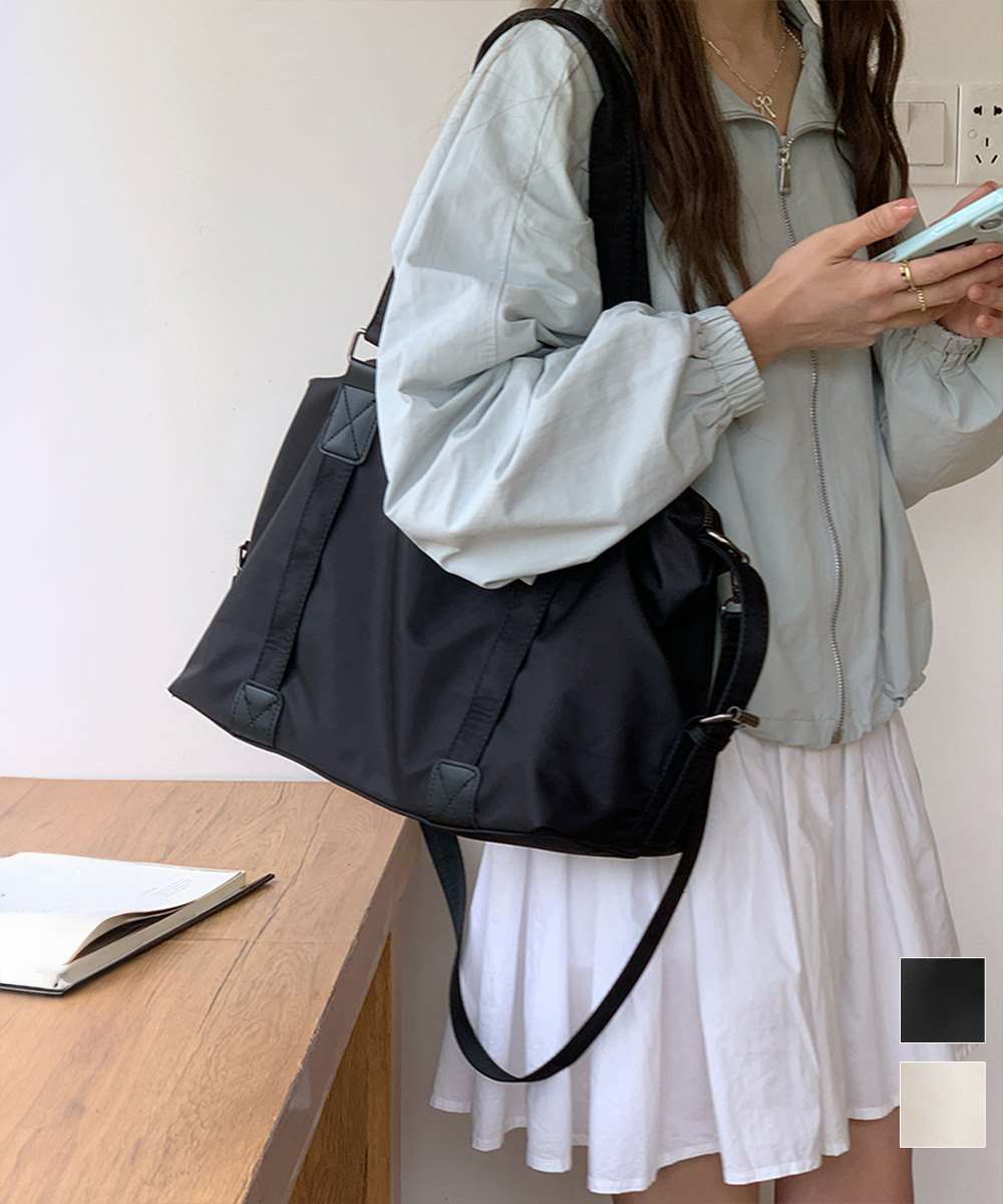 丈夫なナイロン素材を使用した、大容量の2WAYトートバッグ。