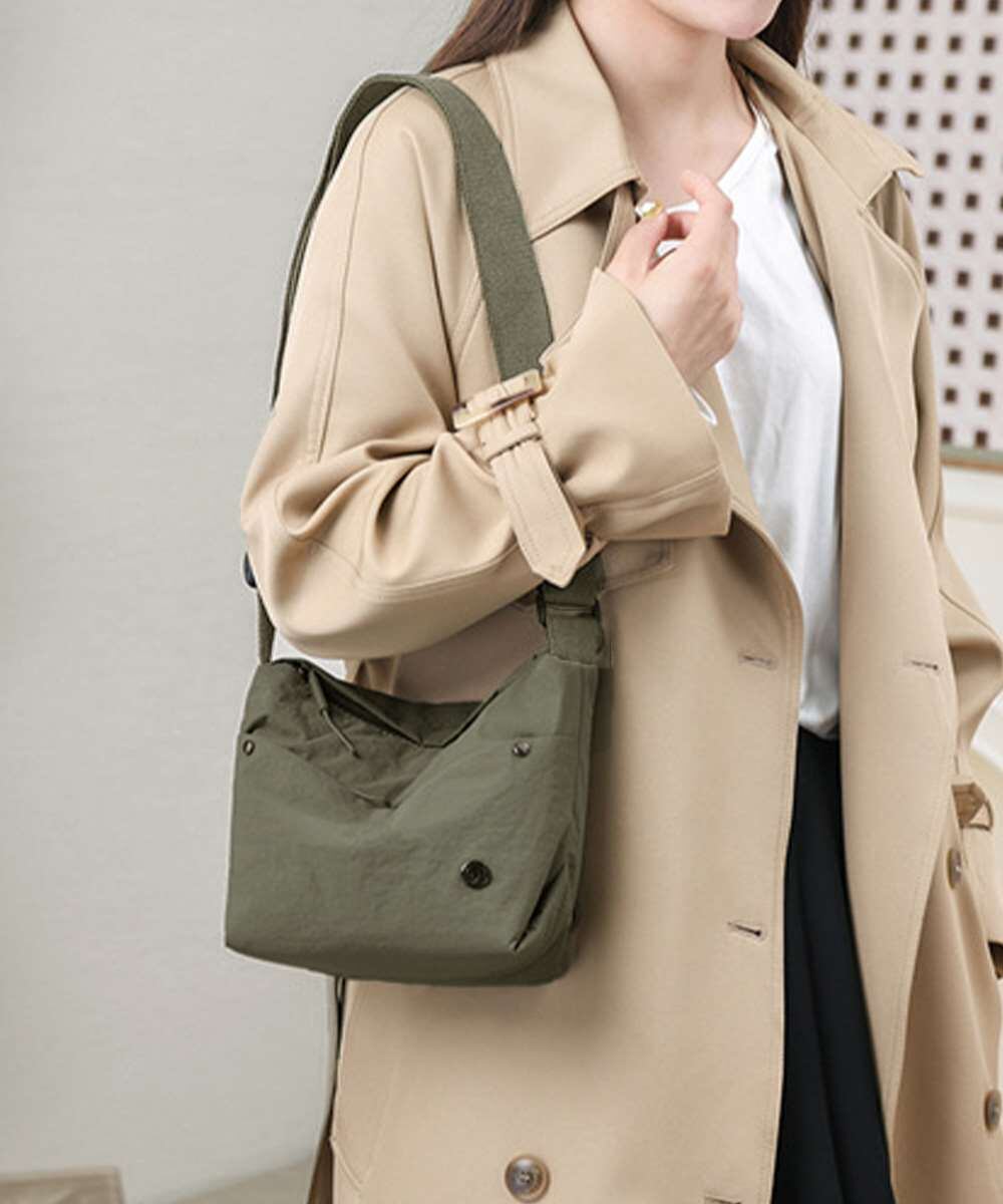 長さ調節可能なショルダーベルトで、肩掛け・斜めがけの2WAY仕様。