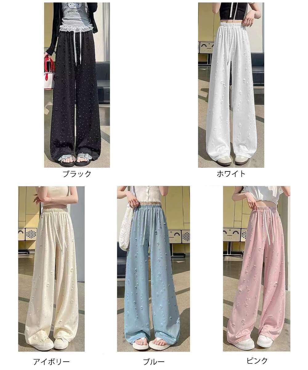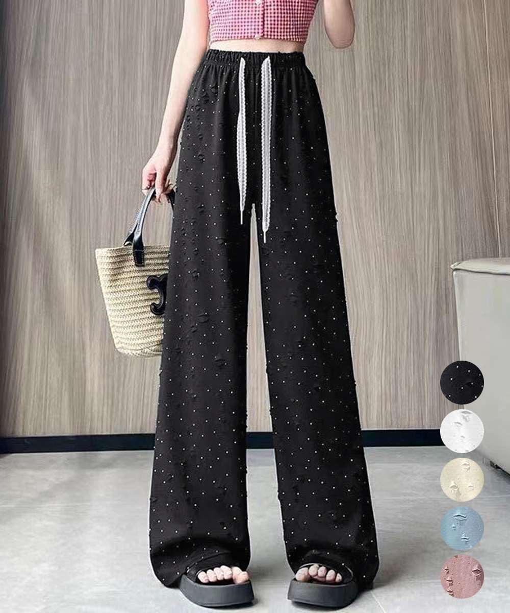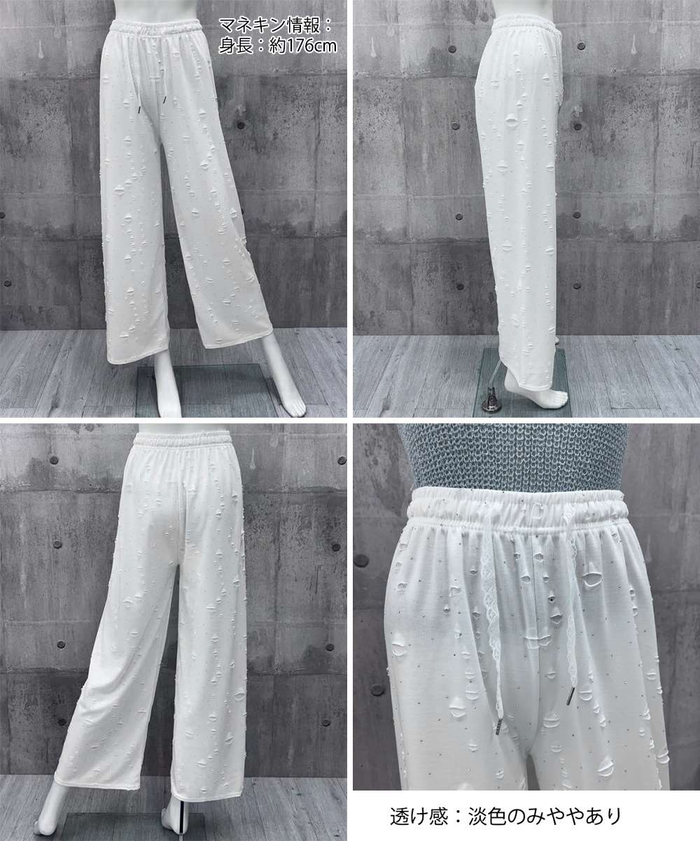 キラキラ ビジュー ワイド パンツ ダメージ加工