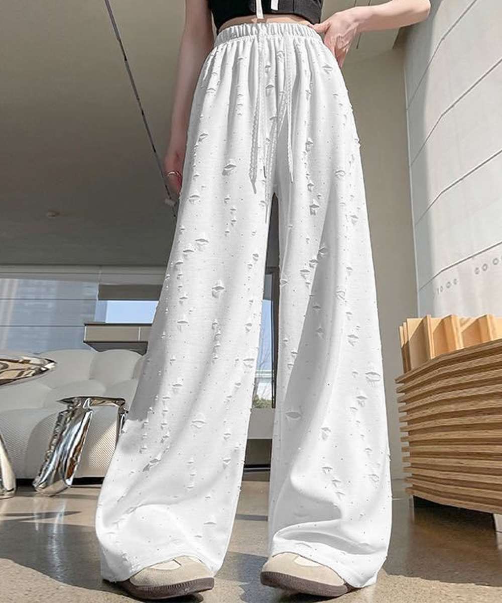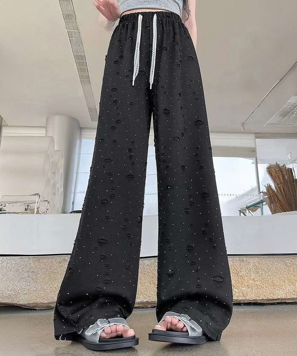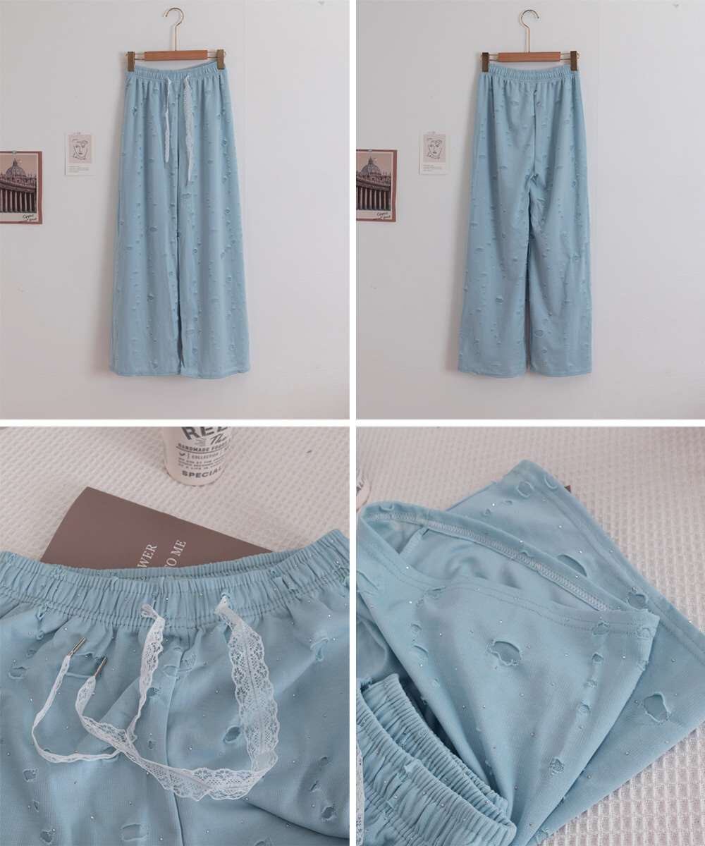 キラキラ ビジュー ワイド パンツ ダメージ加工