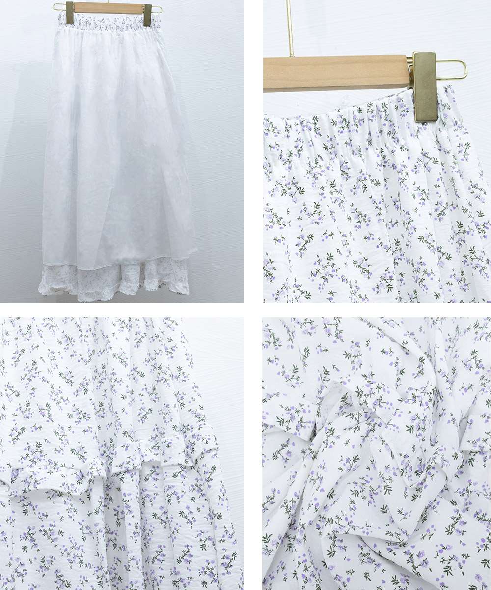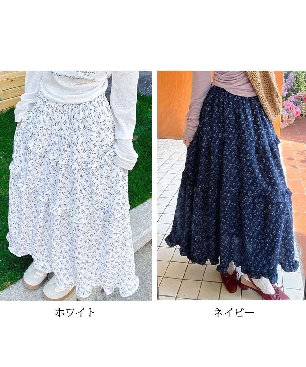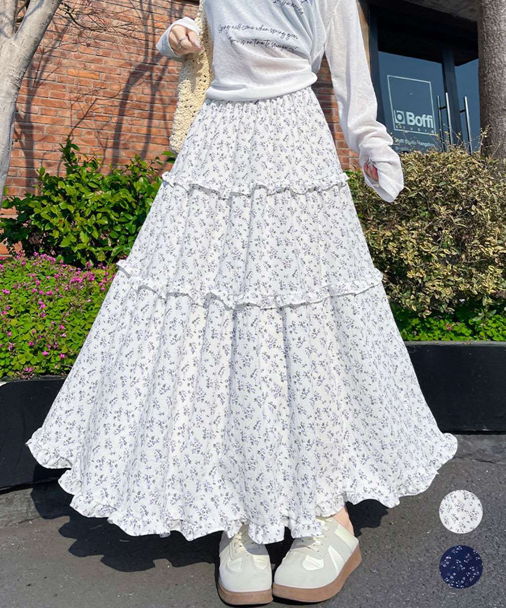 フリルヘム×3段ティアード仕様の、ボリューム感たっぷりの花柄スカート。