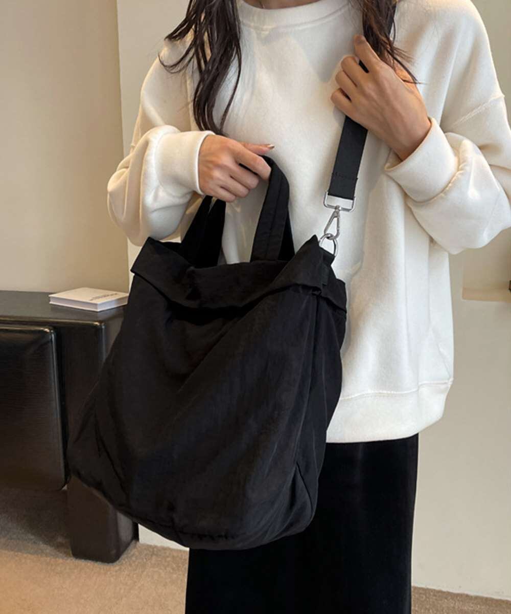 肩掛け・斜め掛けの2WAY仕様で、通勤・通学はもちろん、旅行やマザーズバッグとしても活躍する大容量設計。