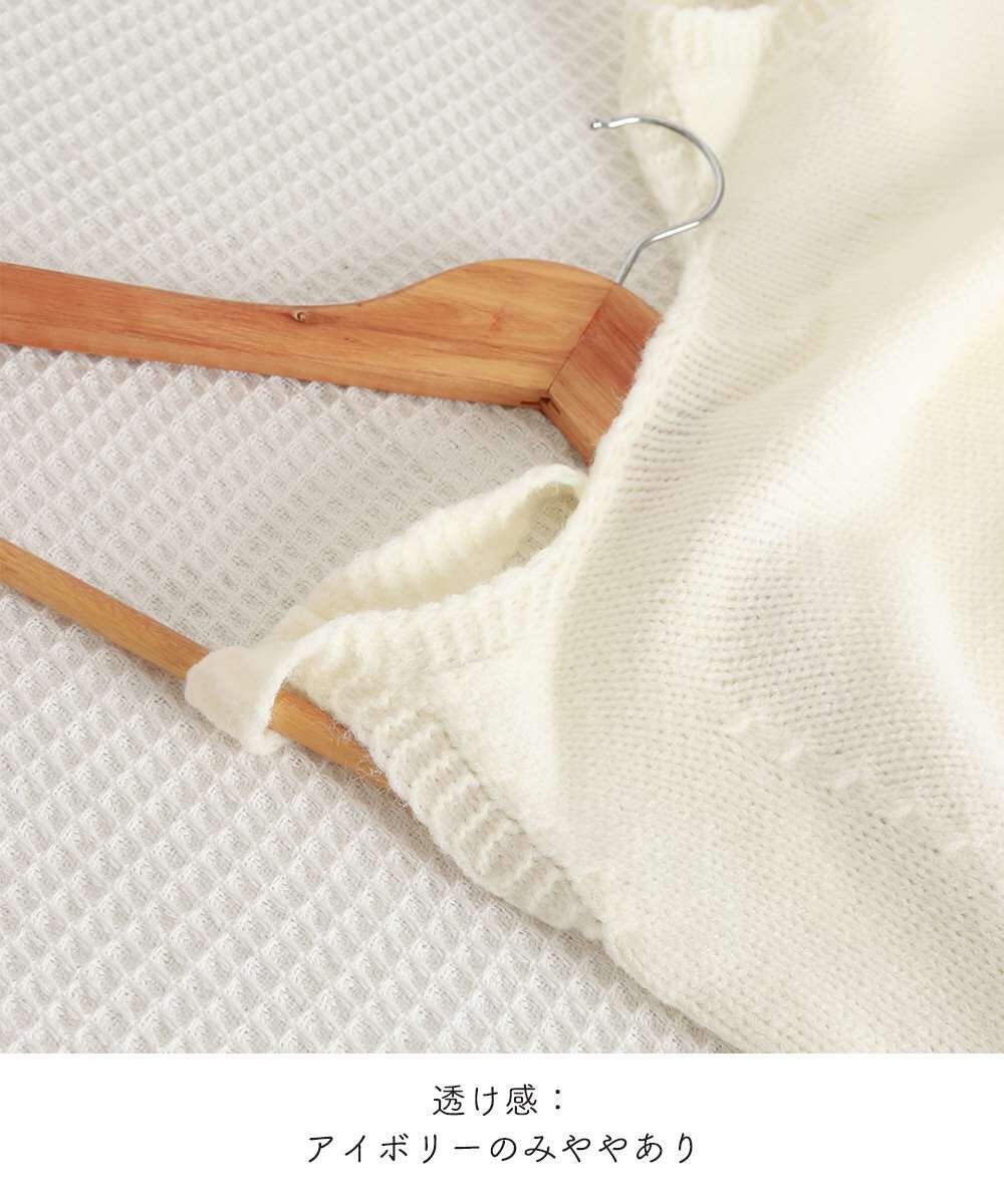 裾のさりげない編み模様がガーリーな雰囲気を引き立ててくれる。
