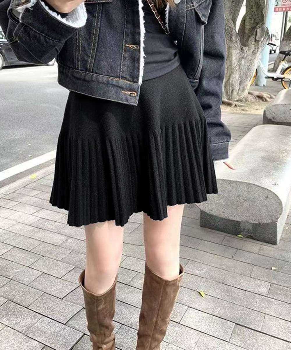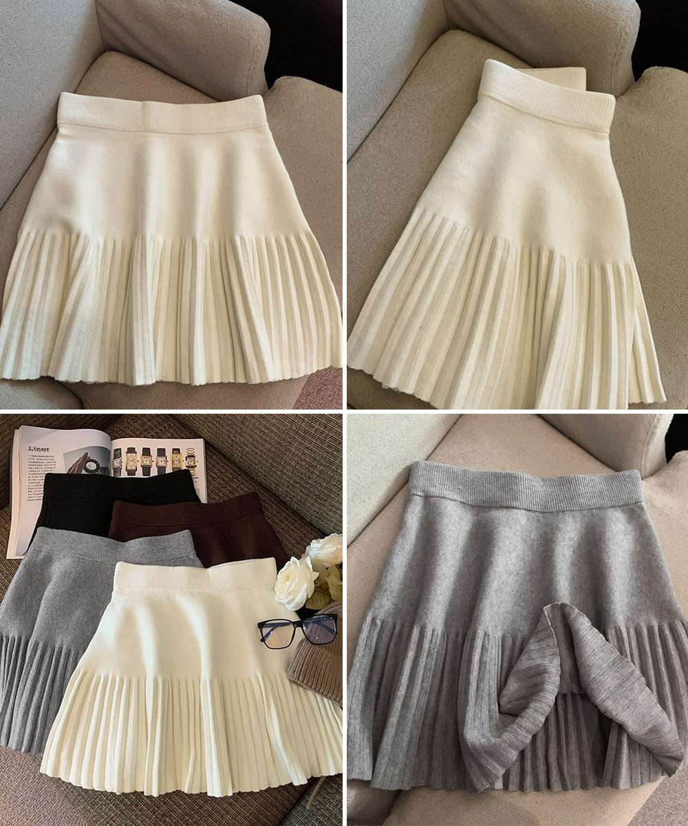 プリーツ ミニ スカート ニット