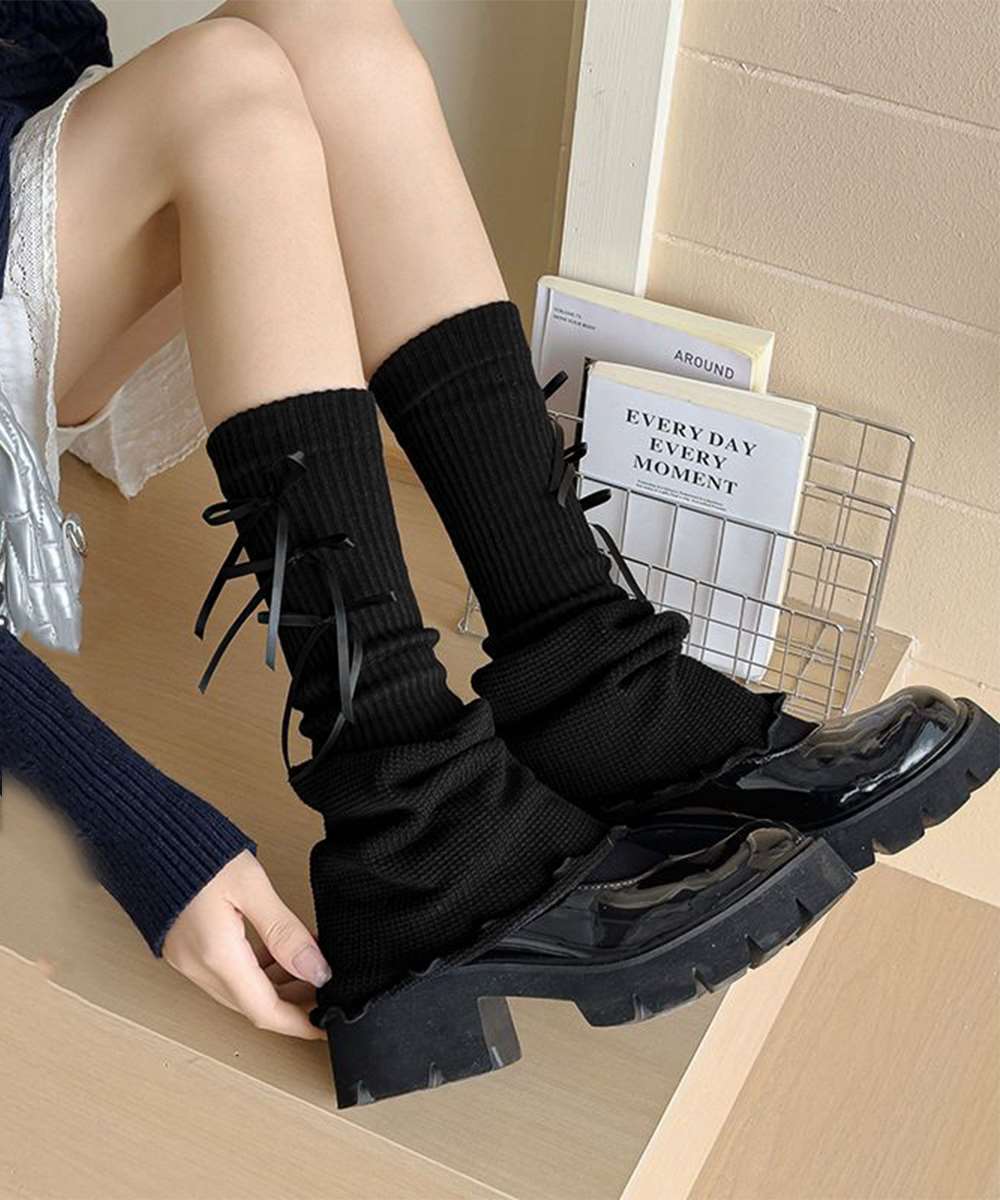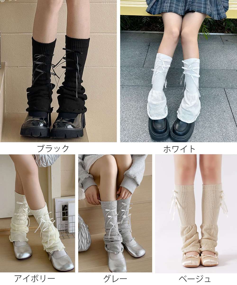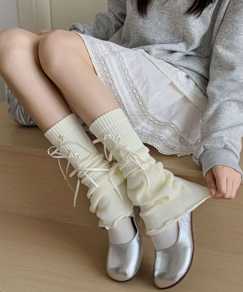 リボン付きの裾フレアデザインが可愛らしいレッグウォーマー。