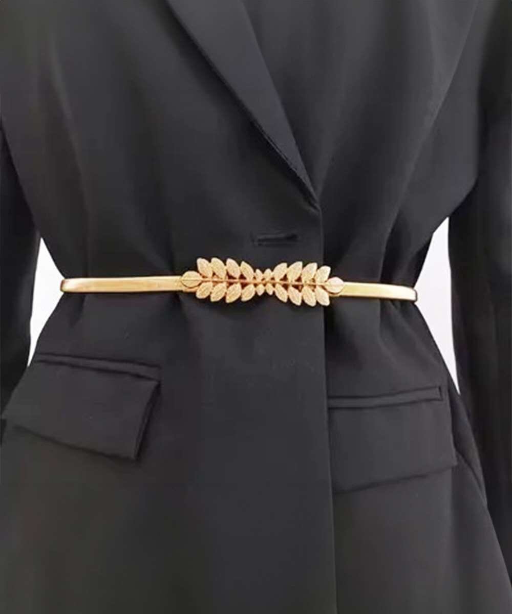 葉の形をしたバックルがアクセントになった細めのチェーンベルト。