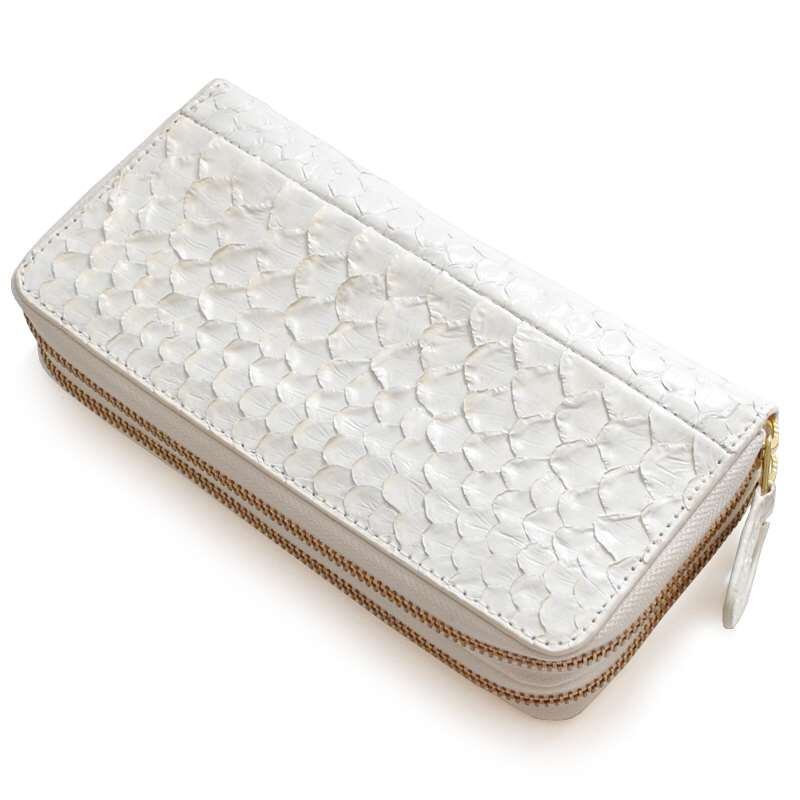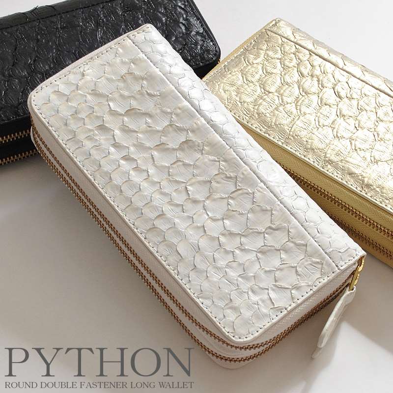 大判鱗の錦蛇革を使用したダブルファスナーのラウンド長財布。