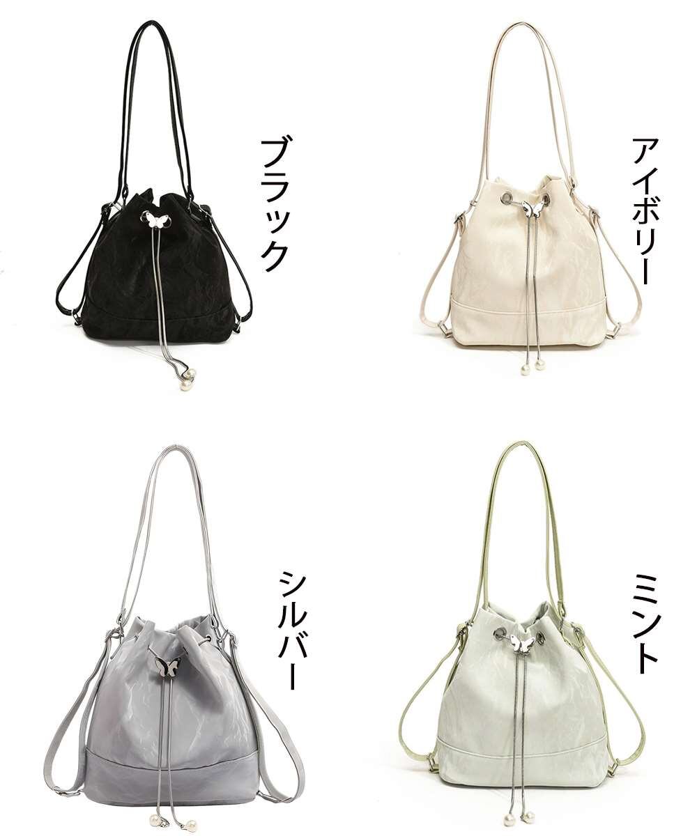 ドローストリングの先端にパールをあしらい、上品さと大人可愛い雰囲気をプラスしたショルダーバッグ。