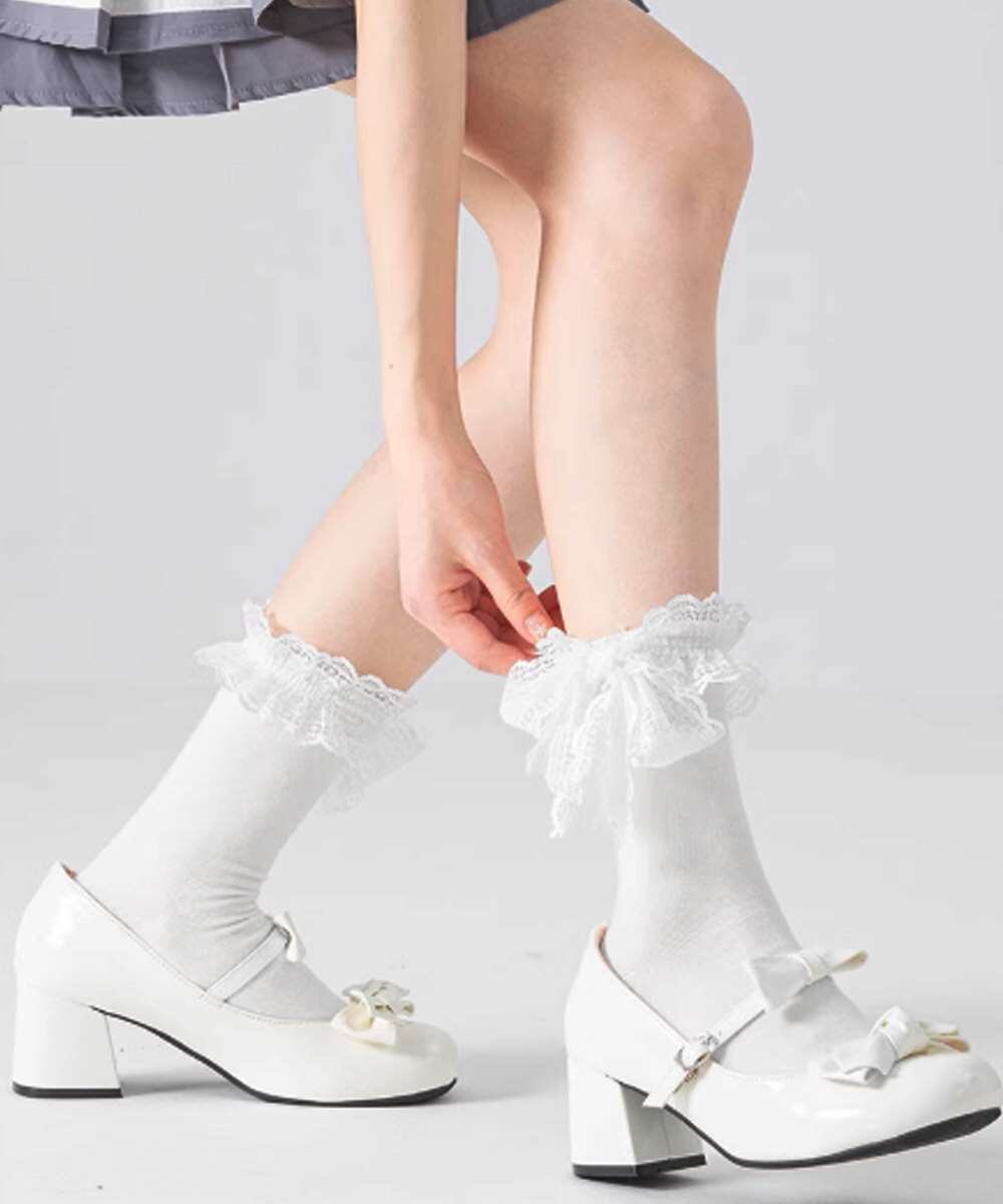 繊細なレースと大きめのリボンがアクセントのガーリーなソックス。
