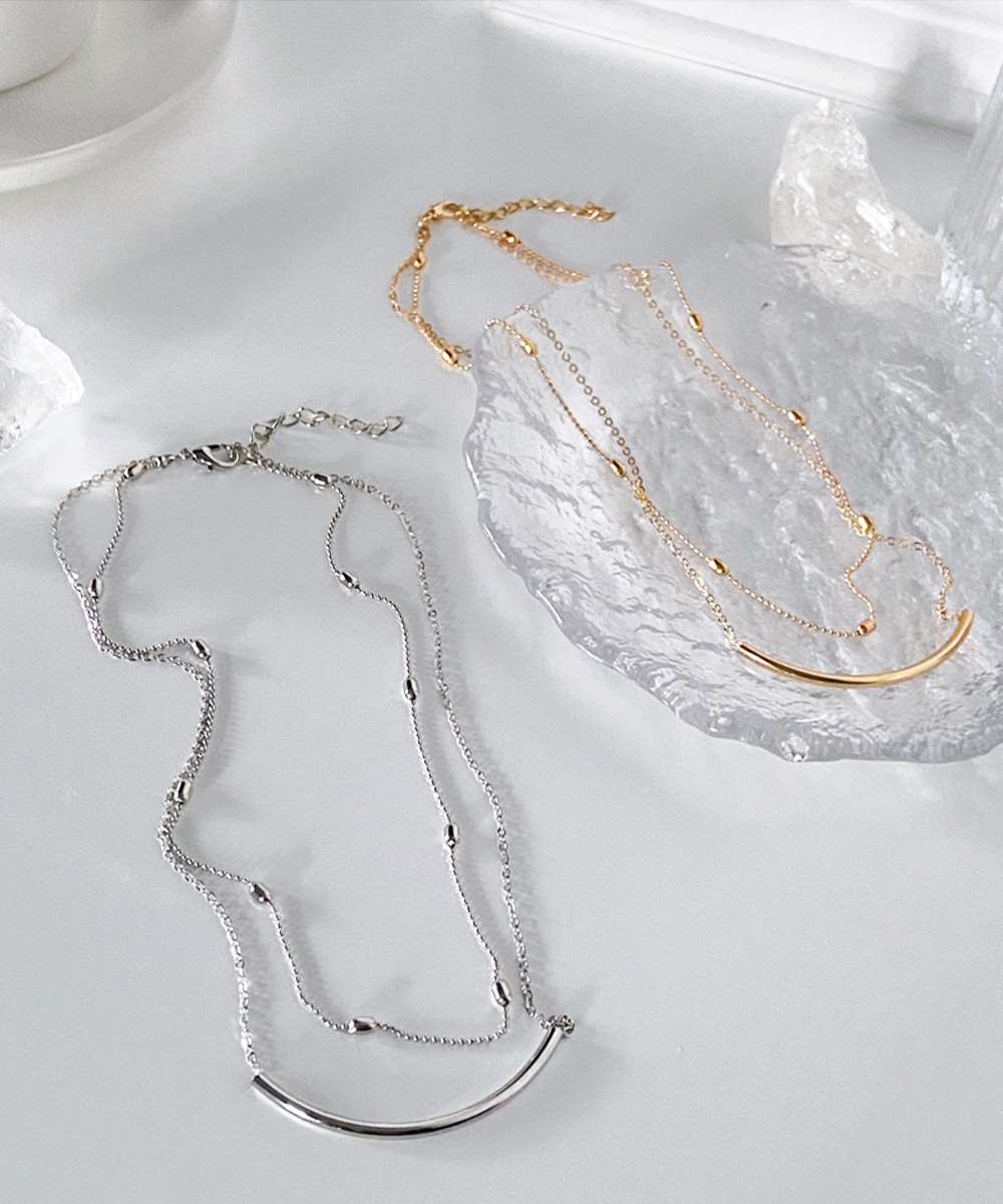 主張し過ぎないシンプルな2連チェーンネックレス。
