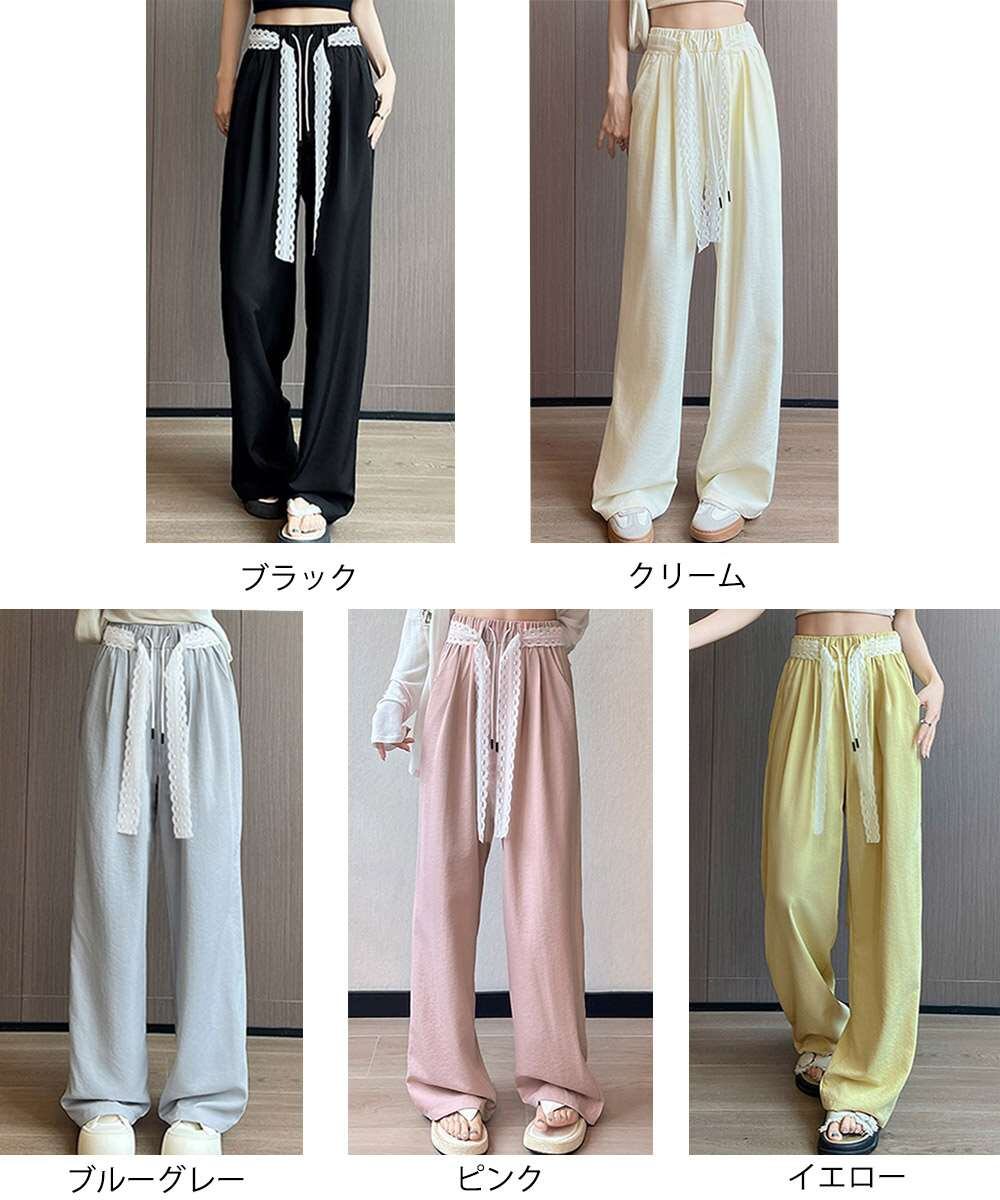 レース ワイド イージーパンツ 韓国風 ボトムス
