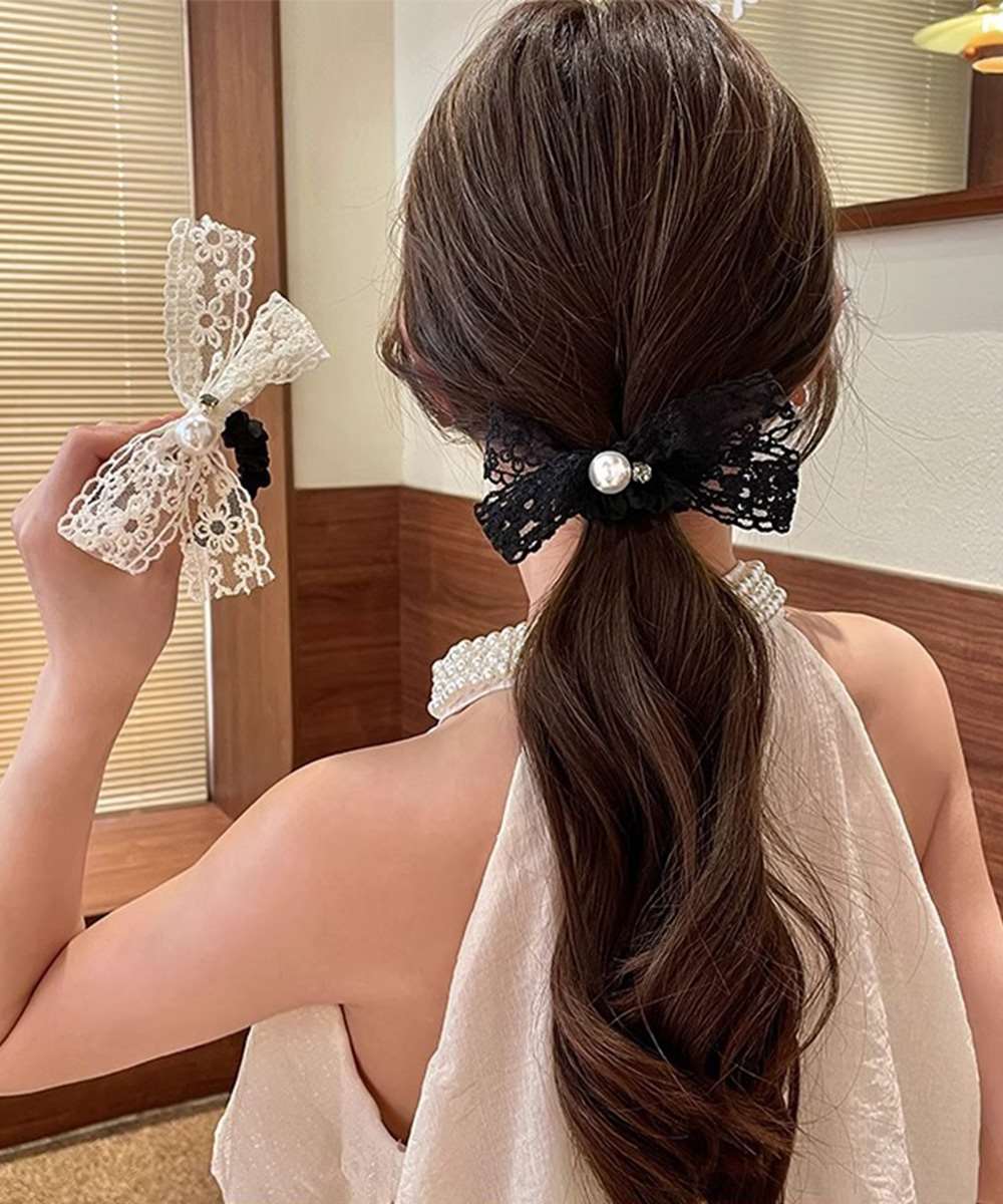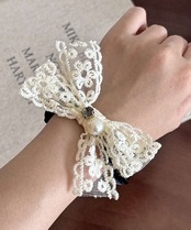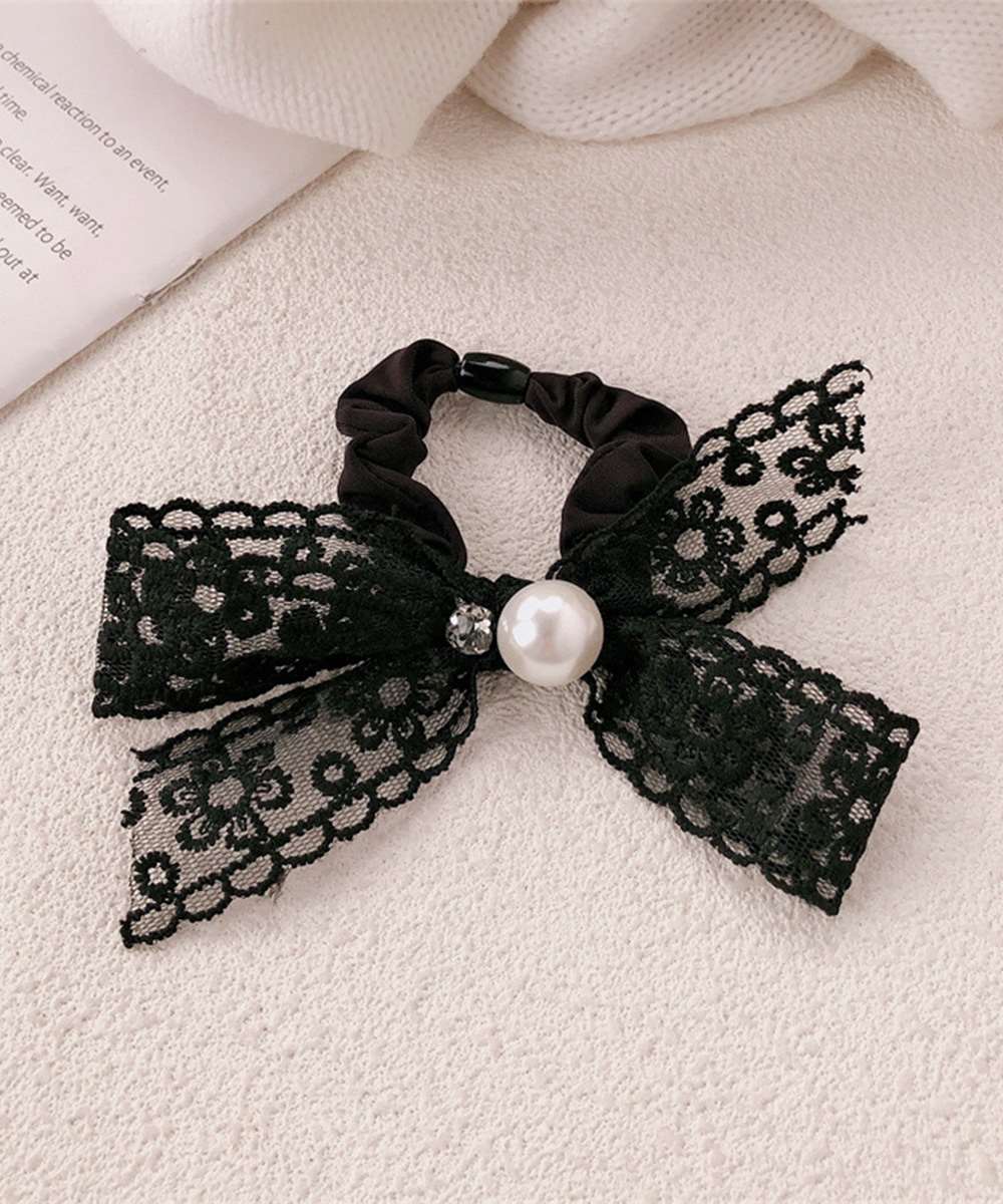 レースリボンがポイントのヘアシュシュ。
