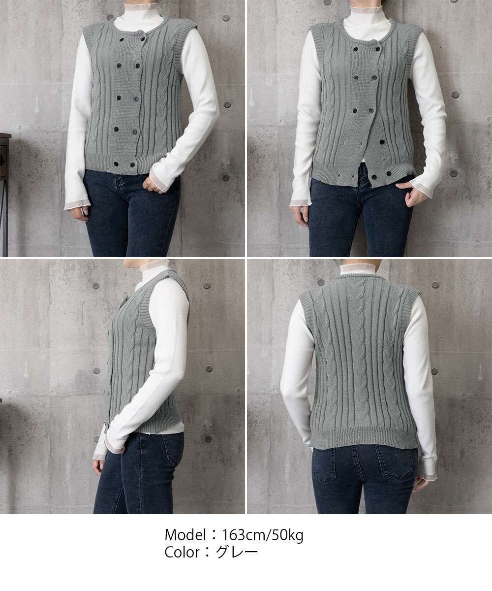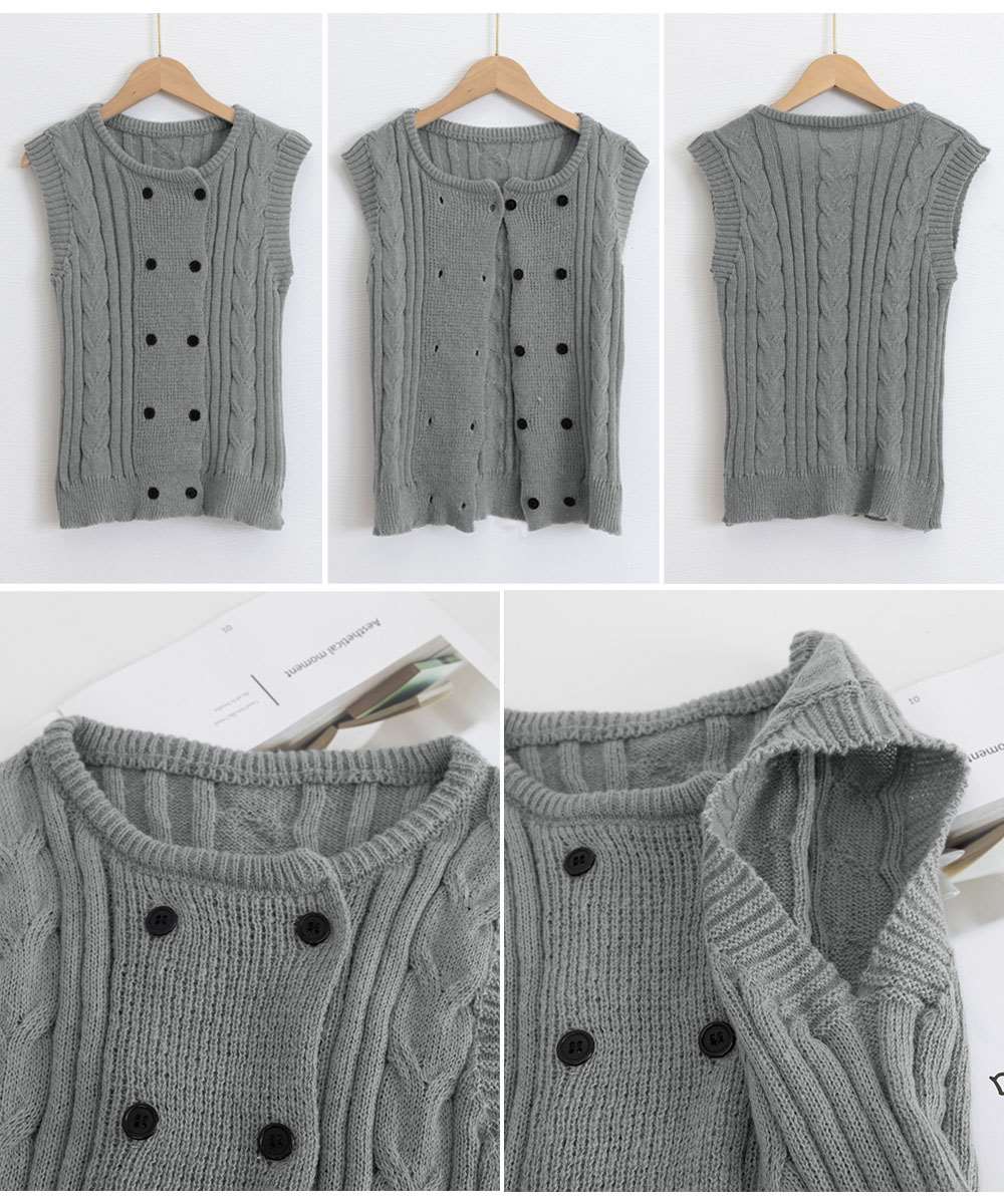 クラシカルな雰囲気漂うケーブル編みのダブルブレストニットベスト。