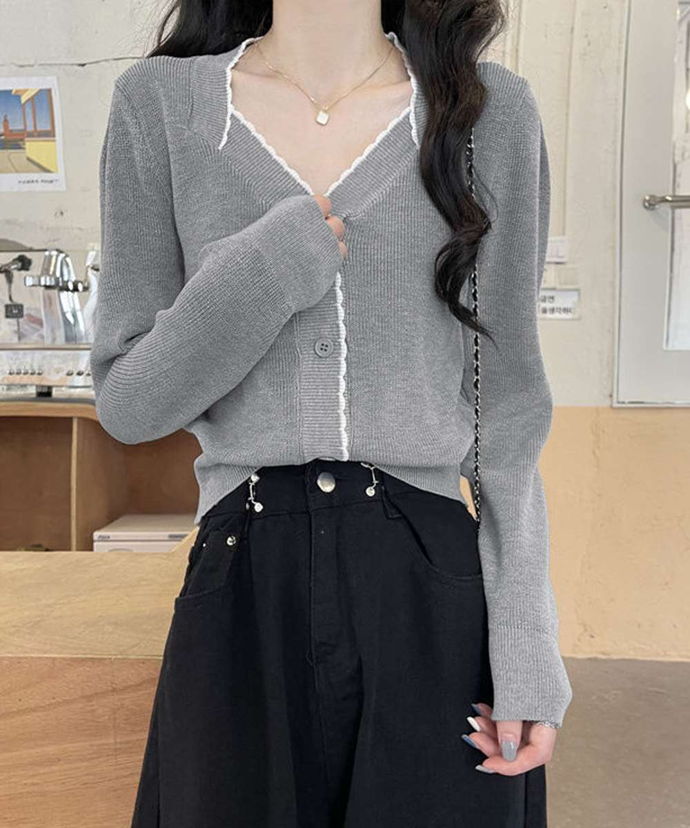 キーワード:ニットソー 韓国風 カーディガン 長袖 大人可愛いトップス
