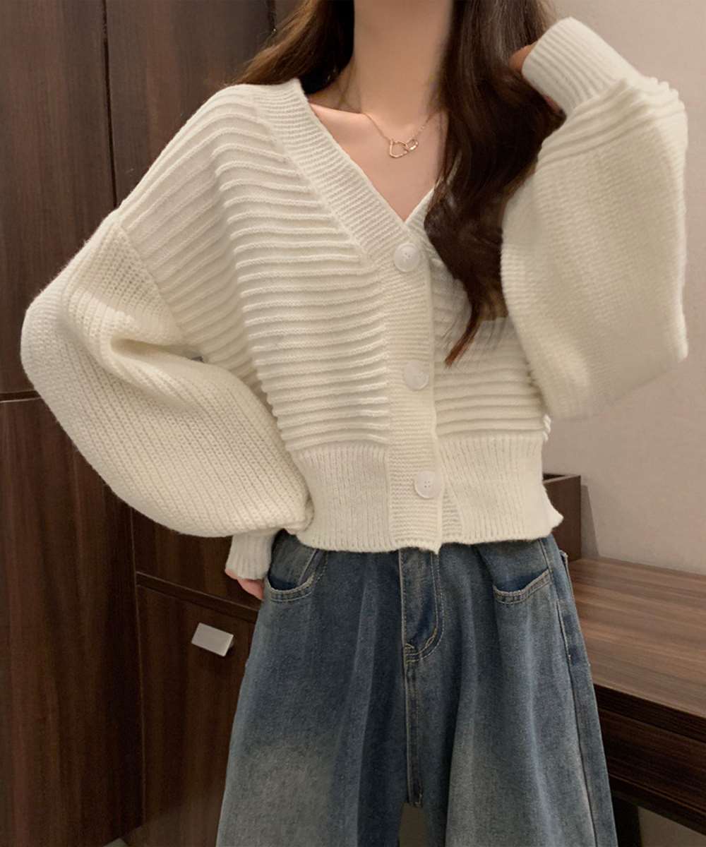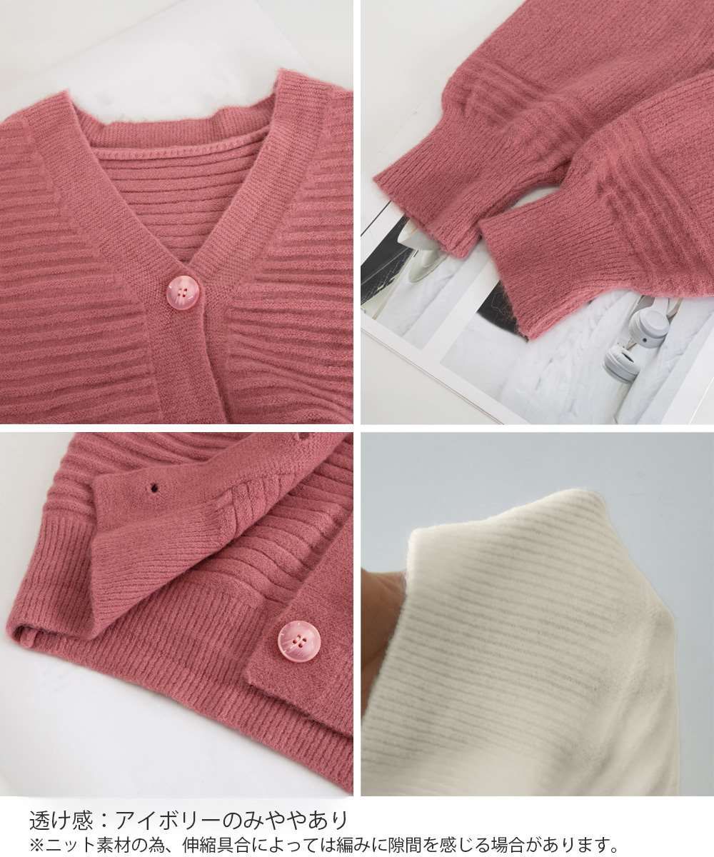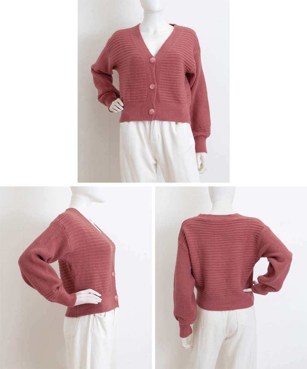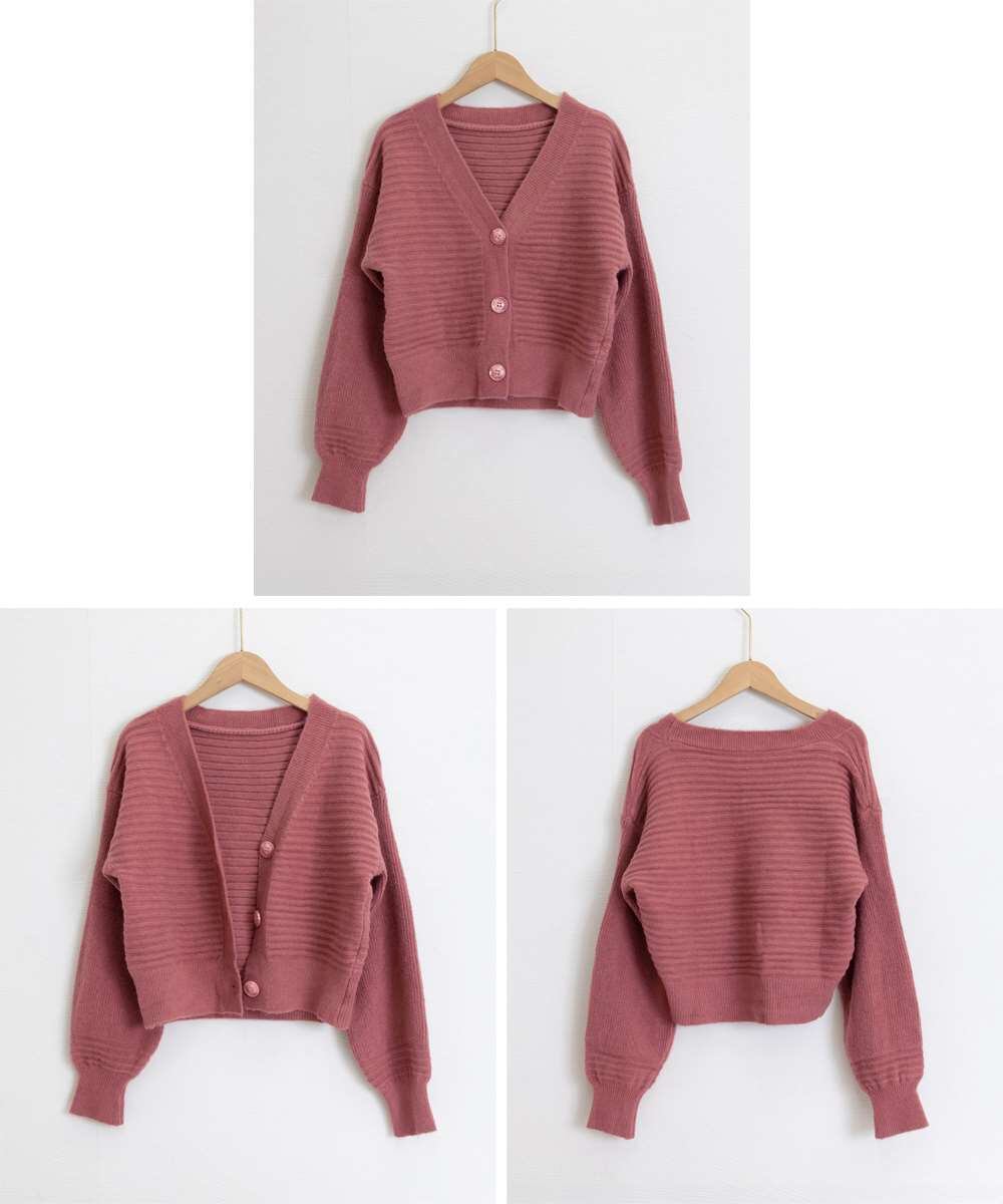 大きめボタンと立体的なリブ編みデザインで、こなれ感を演出。