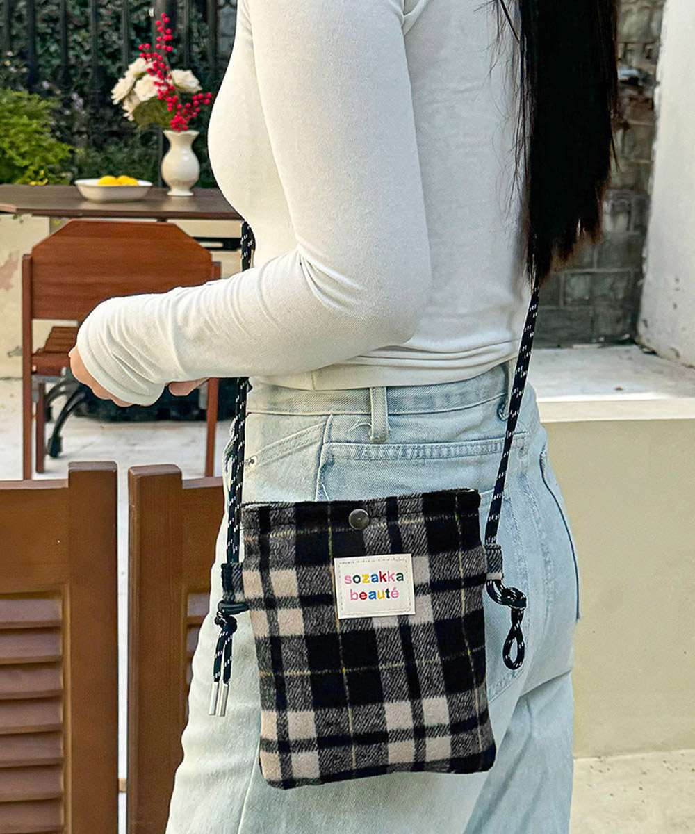 柄ものデザインがコーデに映える、ウール調素材を使用した秋冬新作の斜め掛けショルダーバッグ。