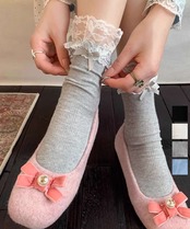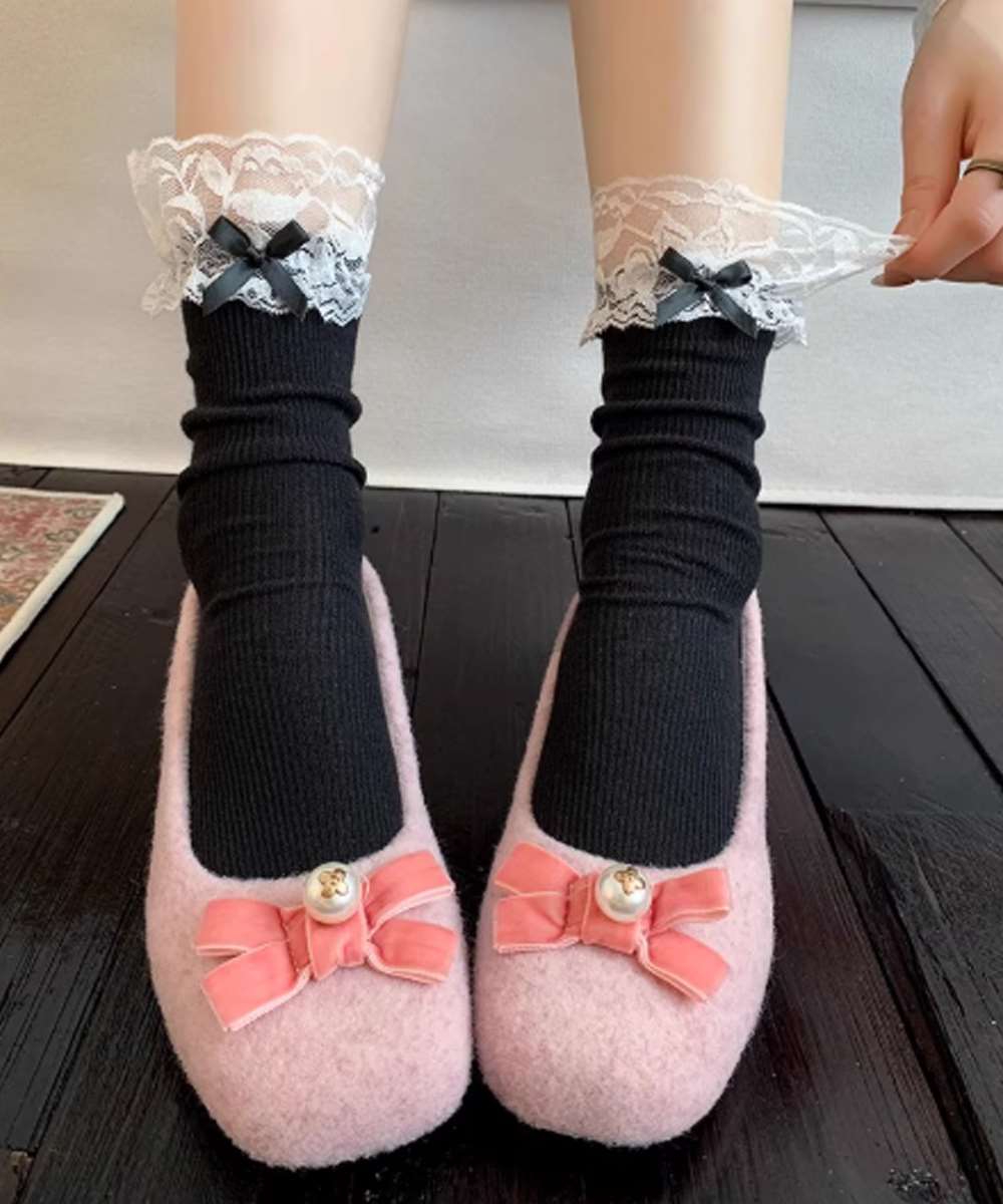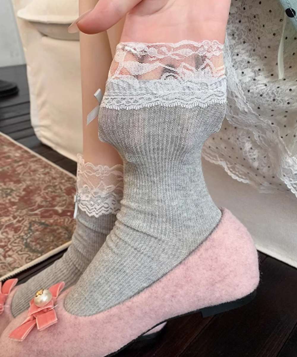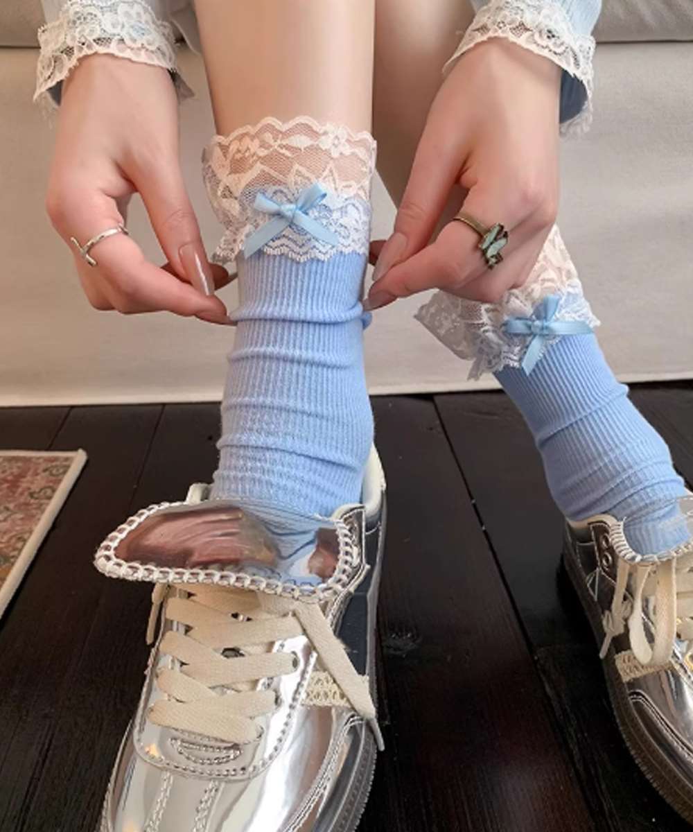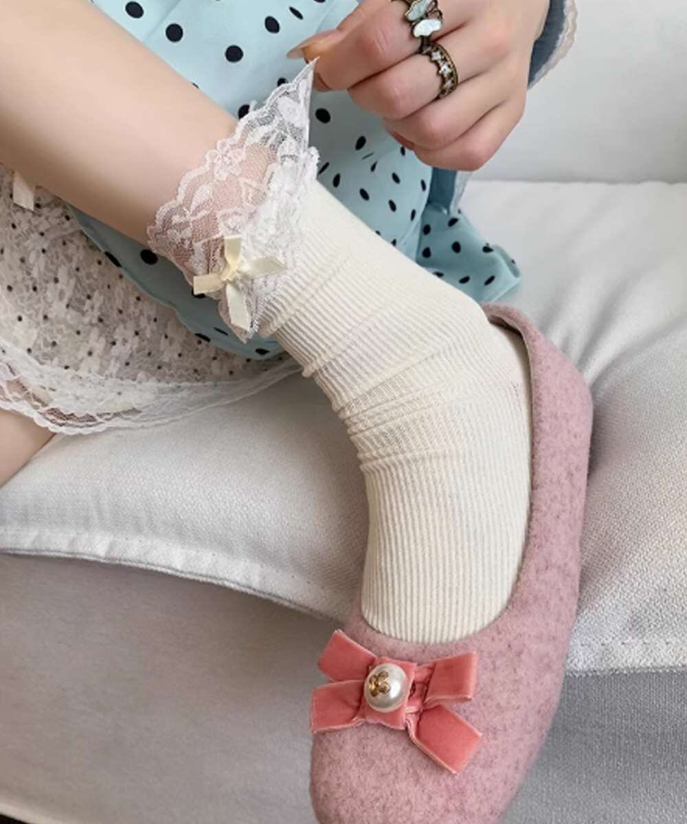 足元を華やかに見せる、フリルレースをあしらったリボンソックス。