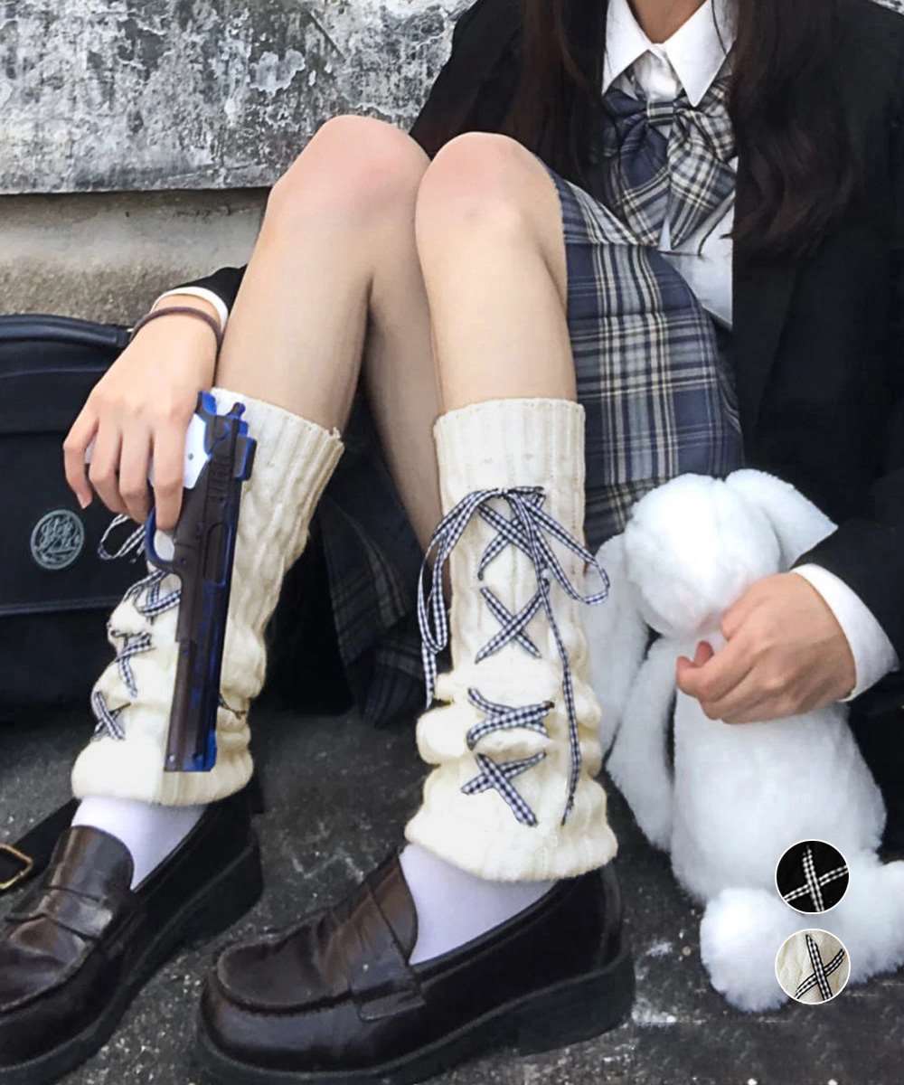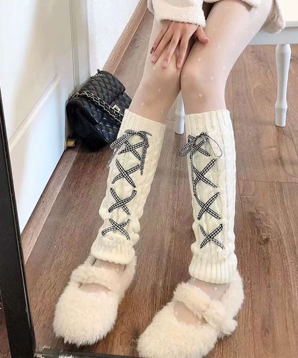 レースアップが可愛いニットレッグウォーマー。