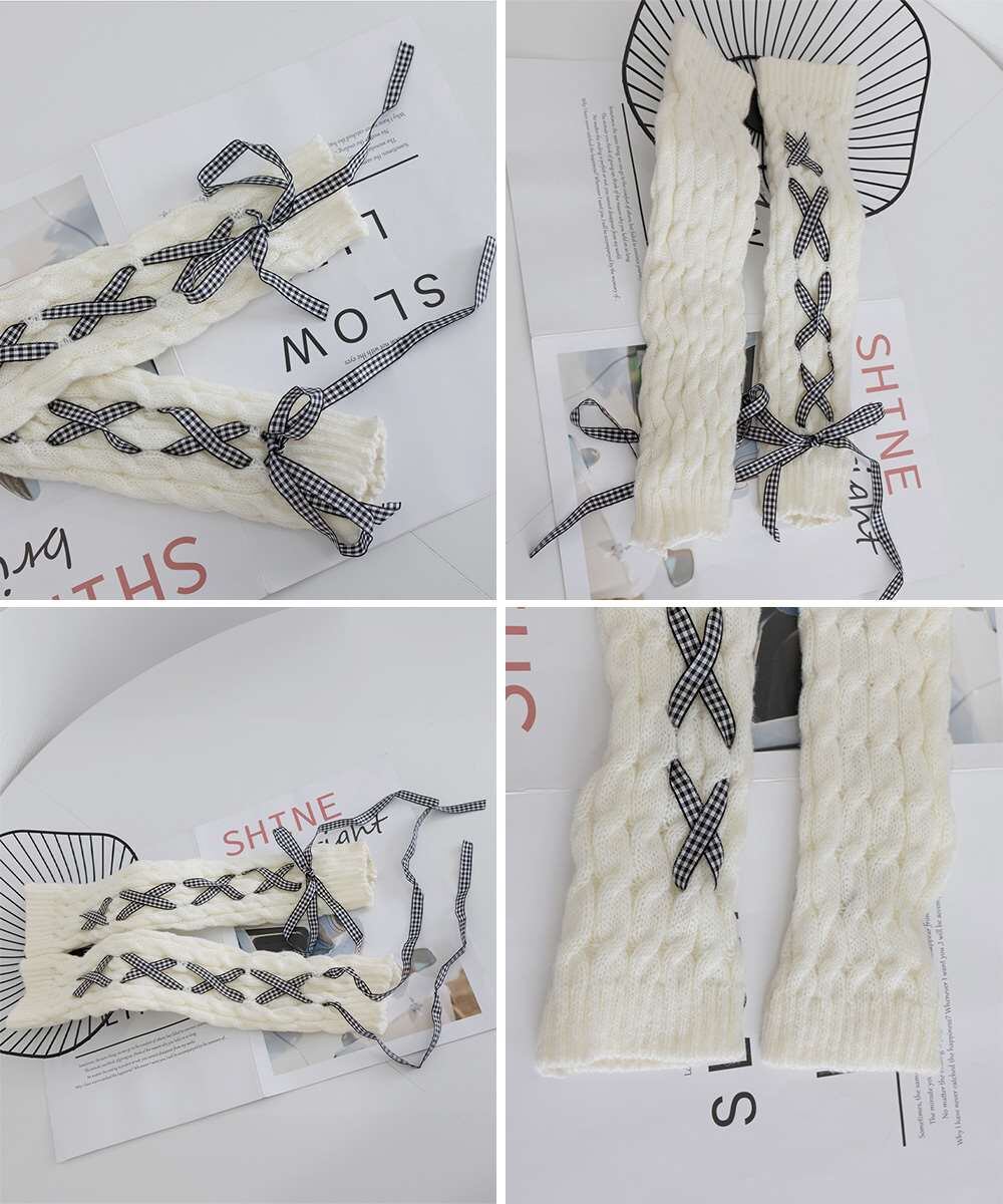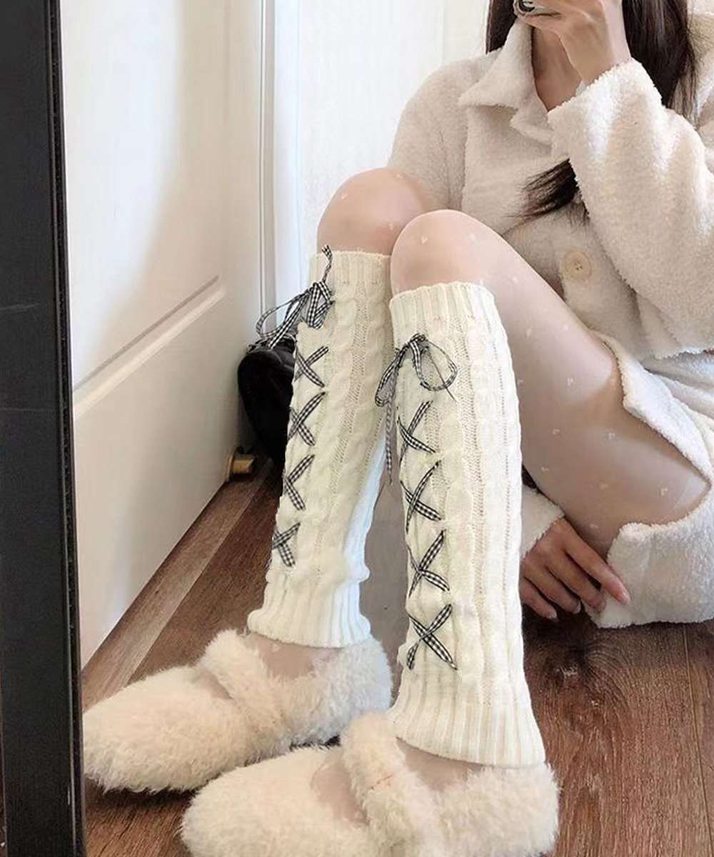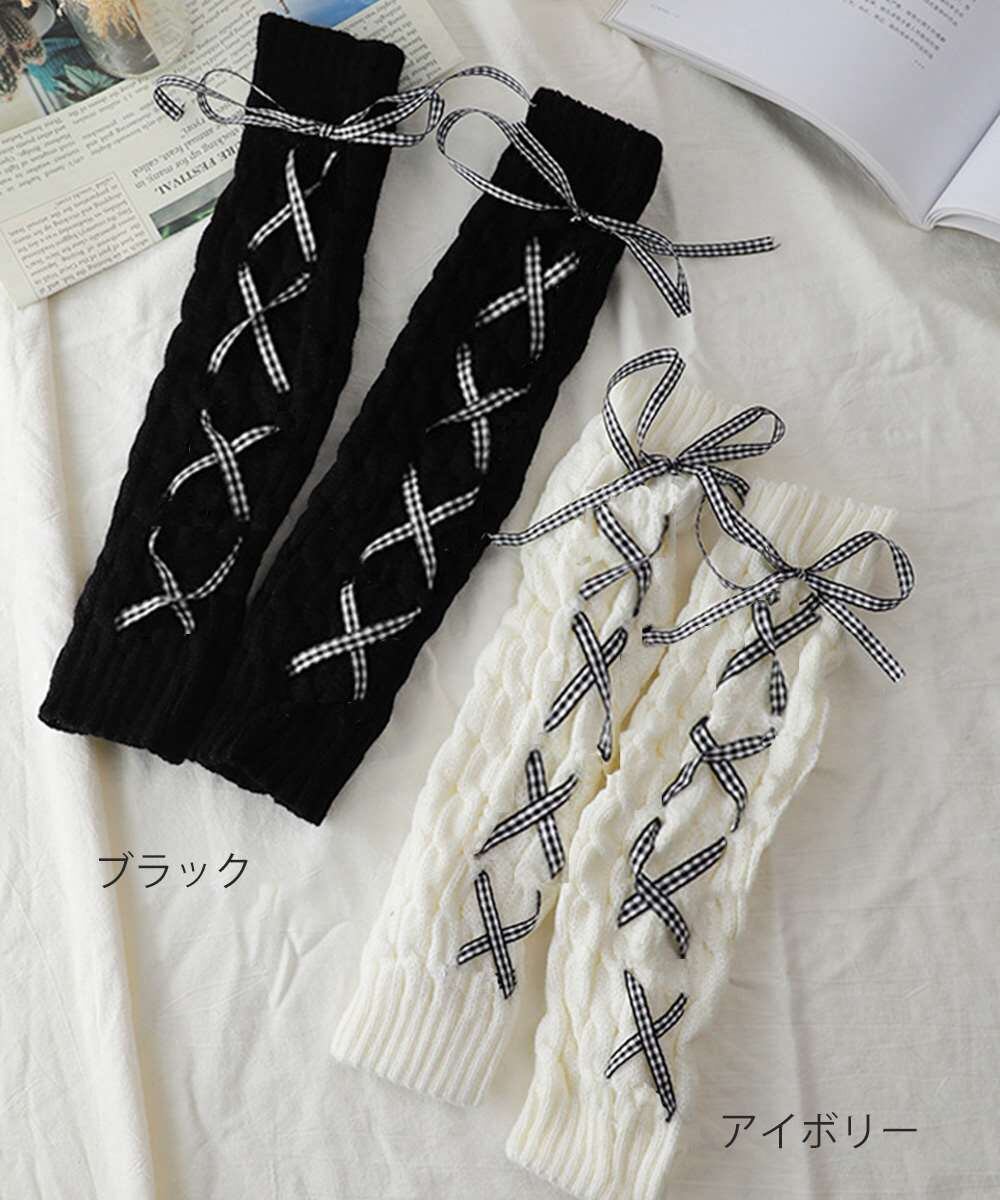 レースアップ ニット レッグウォーマー 暖かい
