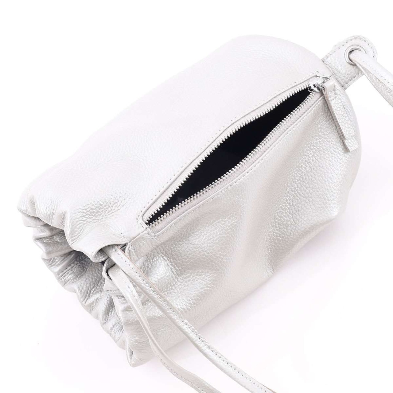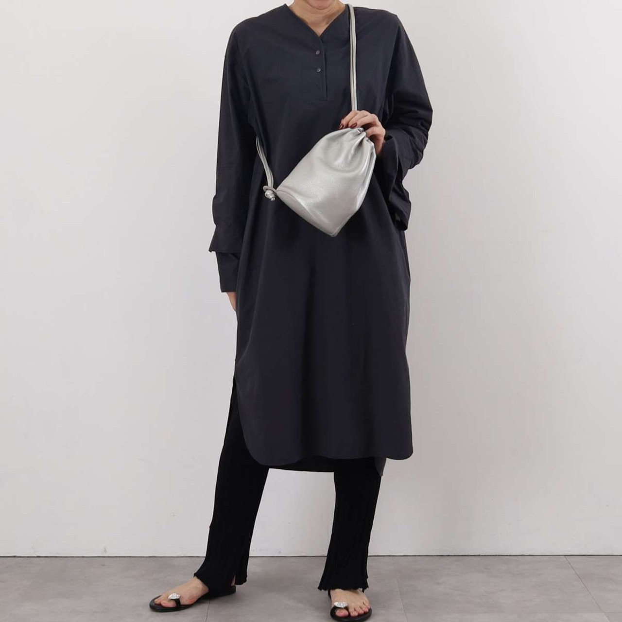 巾着型のボディーと華奢なストラップのコントラストが印象的。