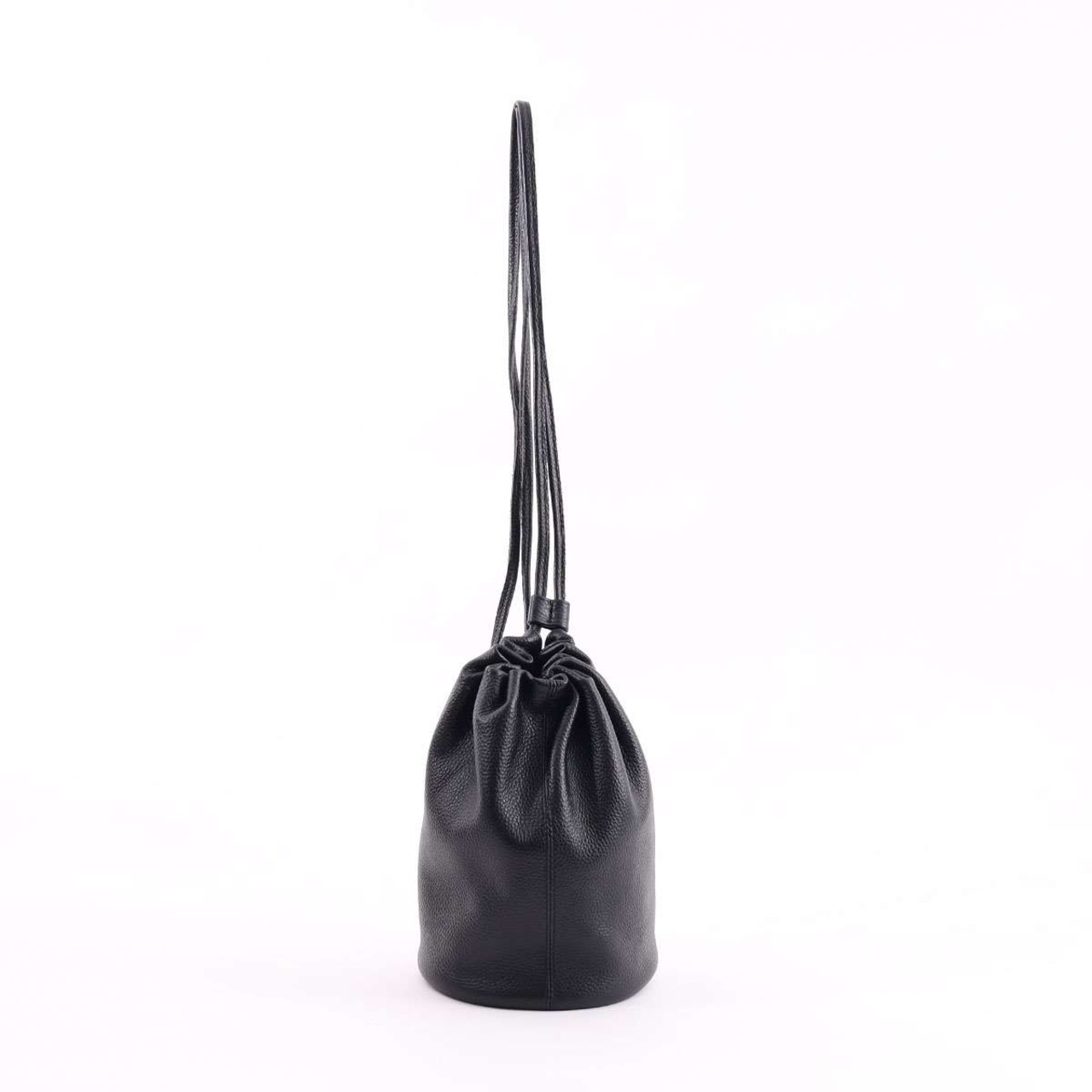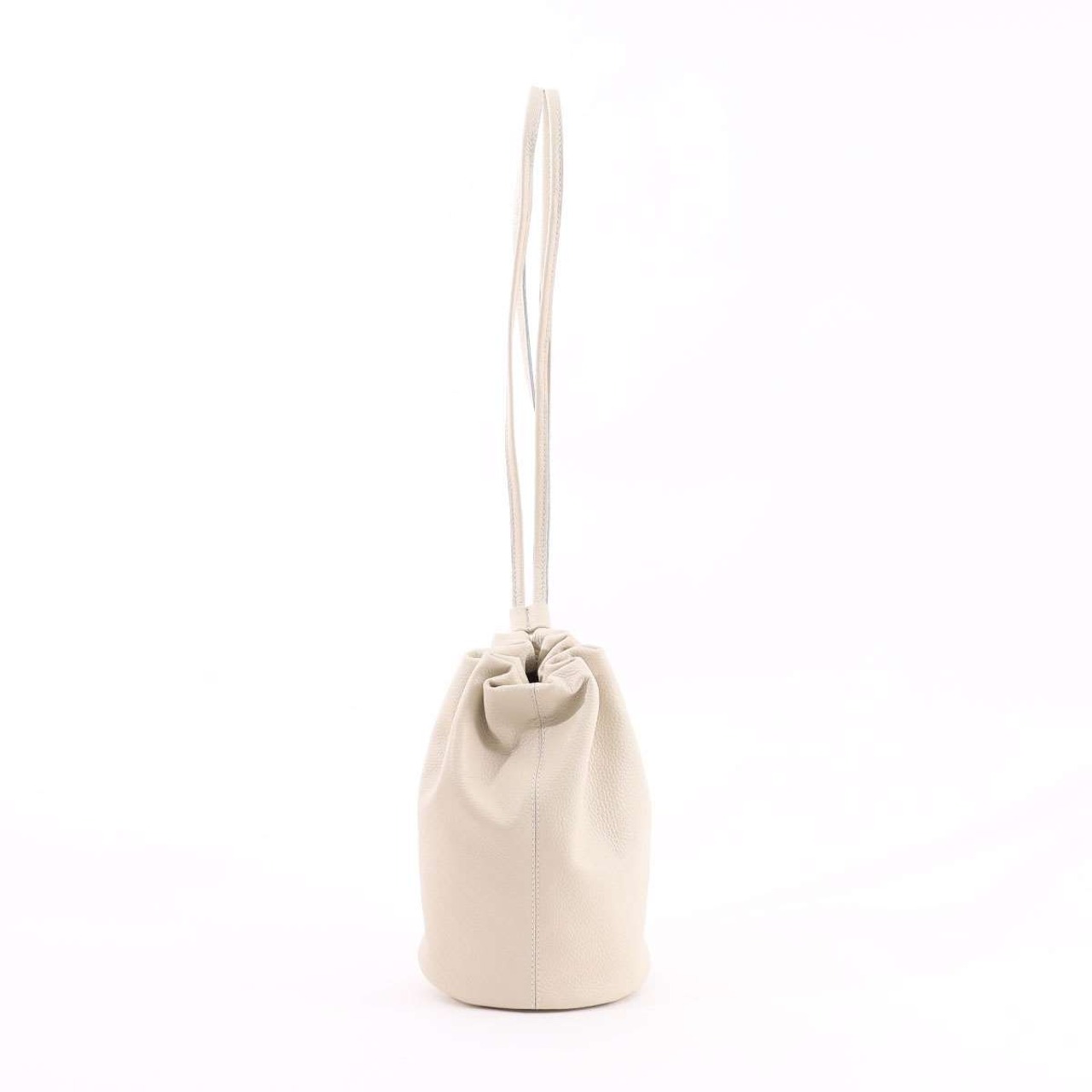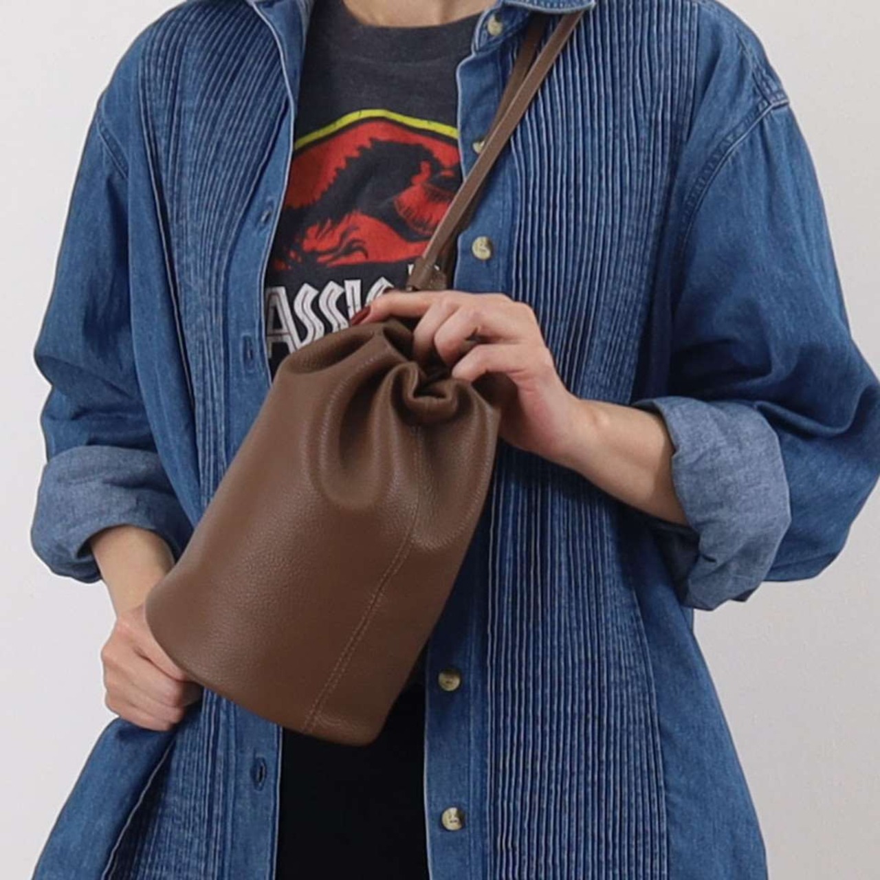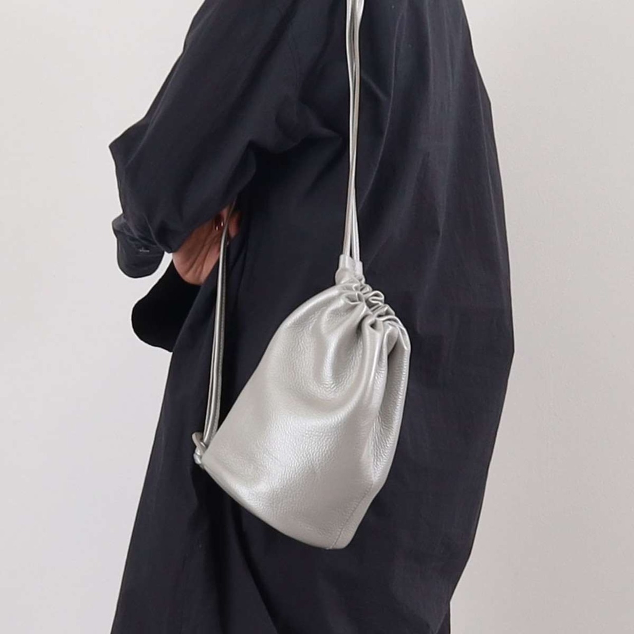洗練されたスタイリングを演出するドローストリングバッグ。