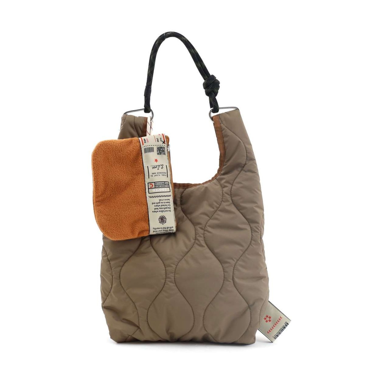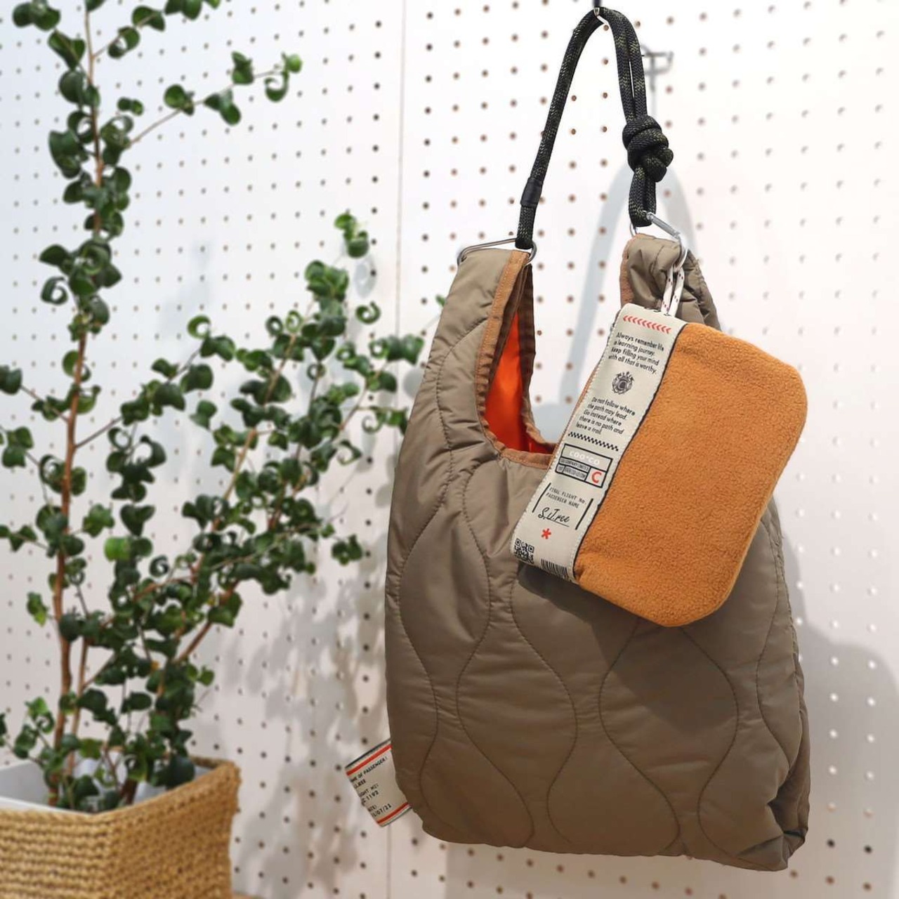 キルティング仕様に異素材ポーチの組み合わせをし、