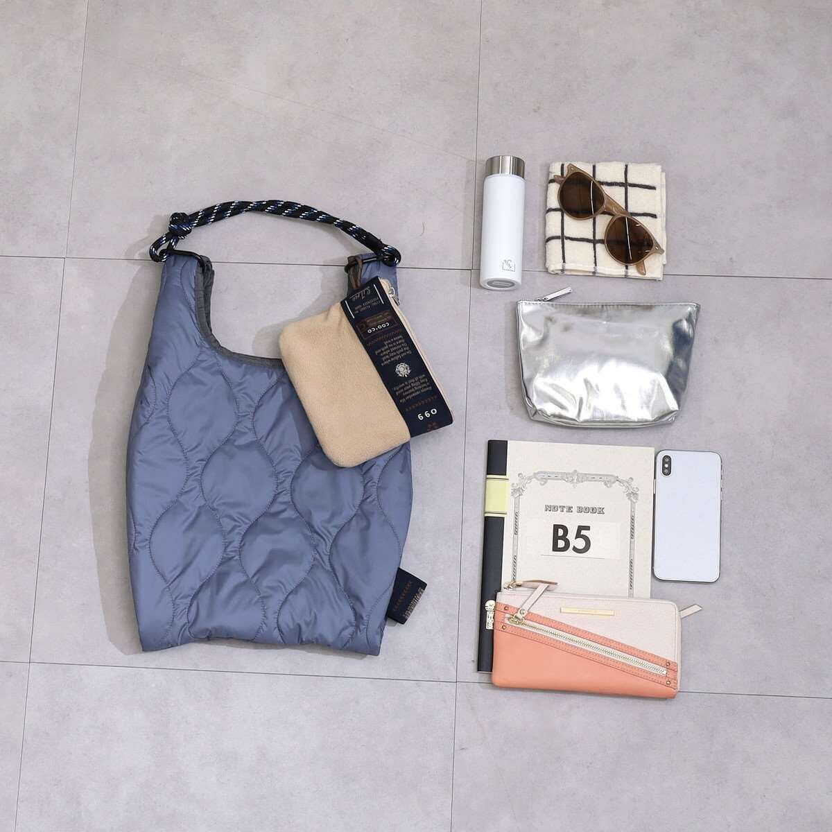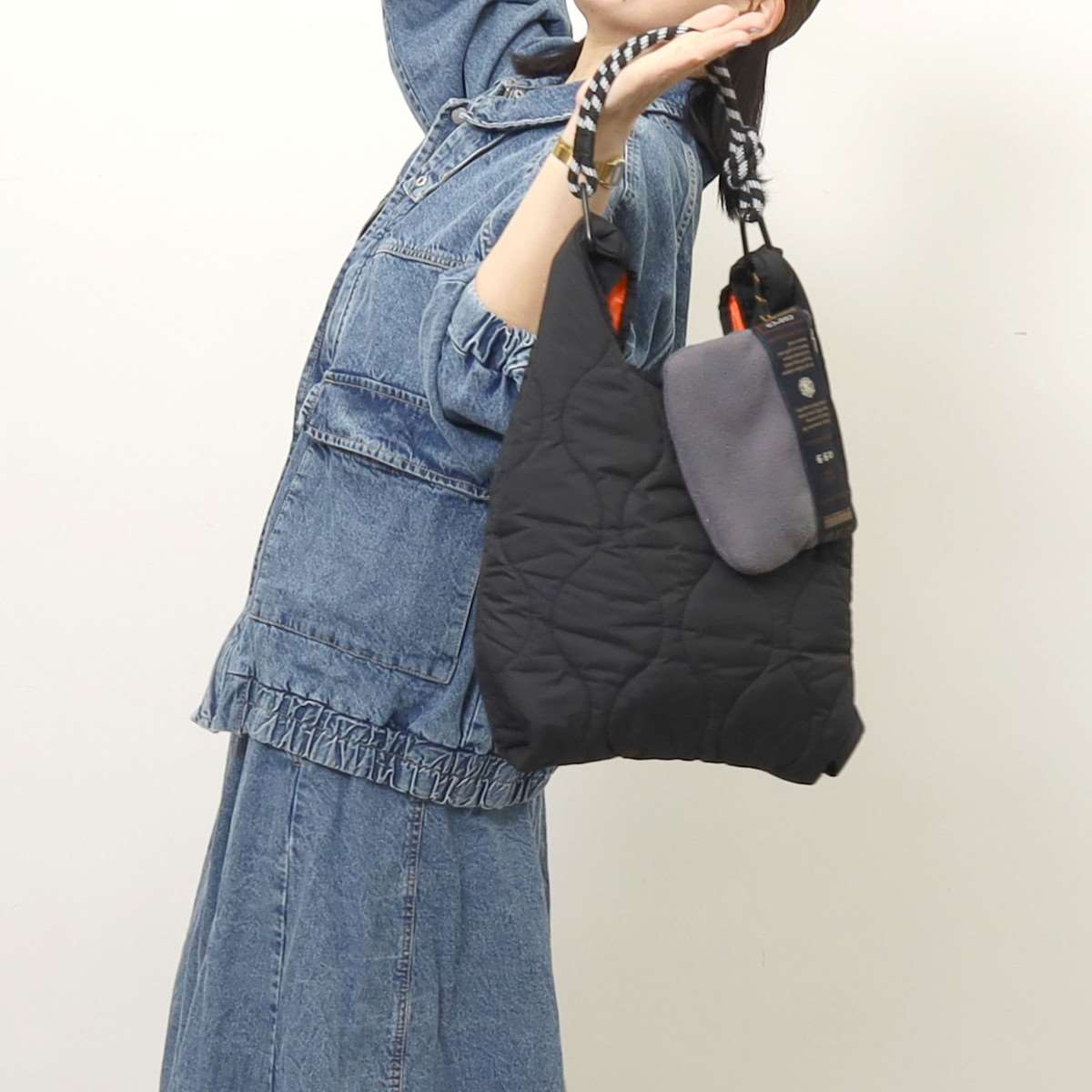 キルティングとフリース風素材のコンビがポイントのマルシェバッグです。