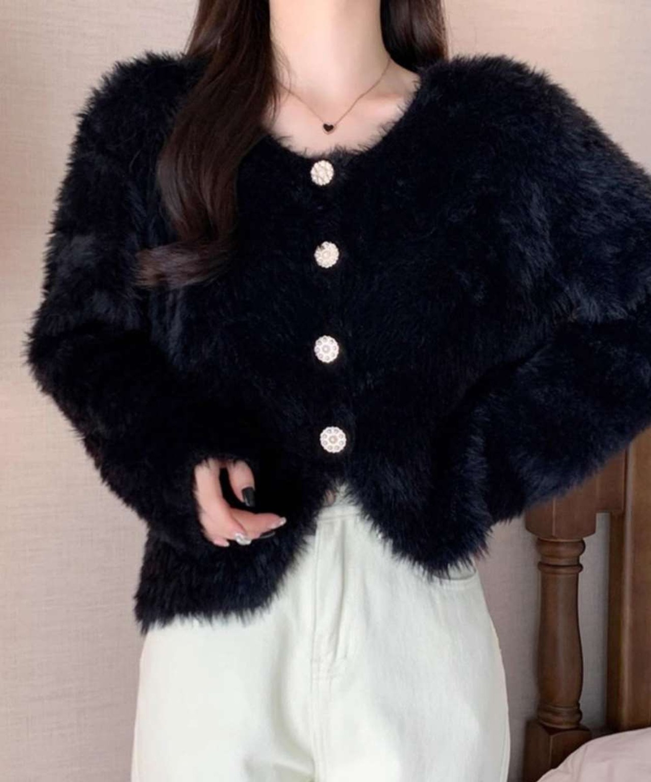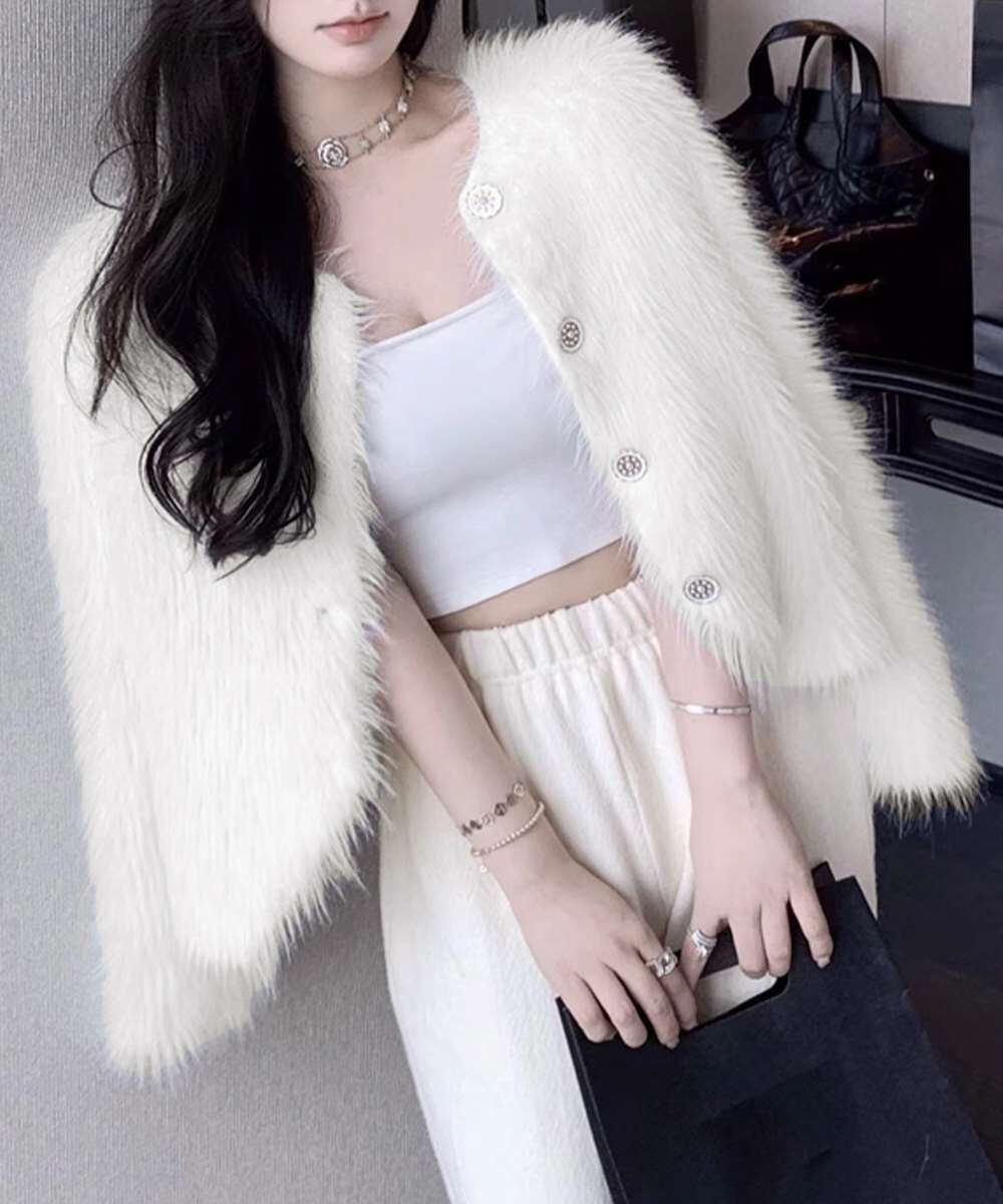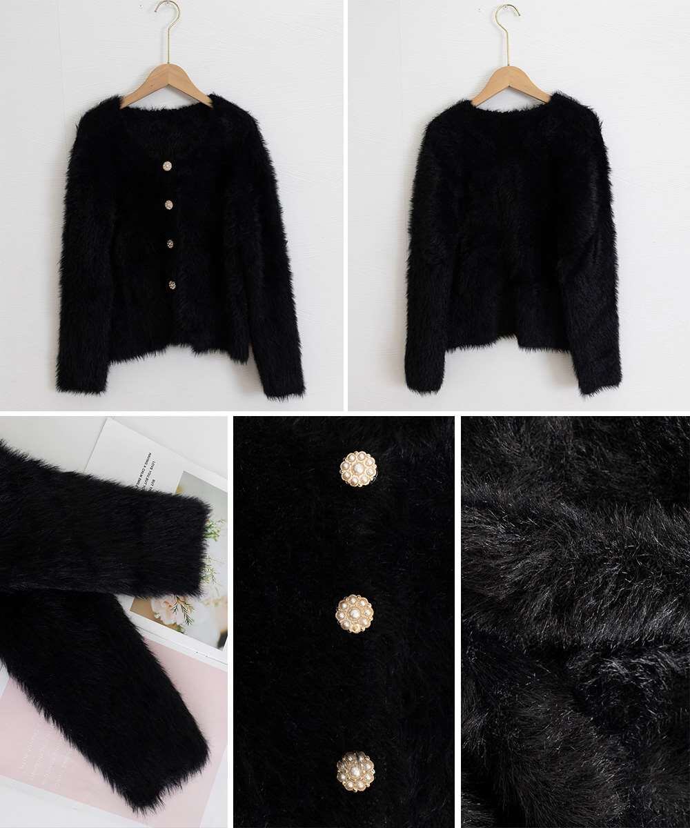 ふわふわの質感が魅力的なショート丈シャギーカーディガン。