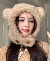 ふわふわの厚手ボア素材で仕上げたクマ耳デザインのレディース帽子。