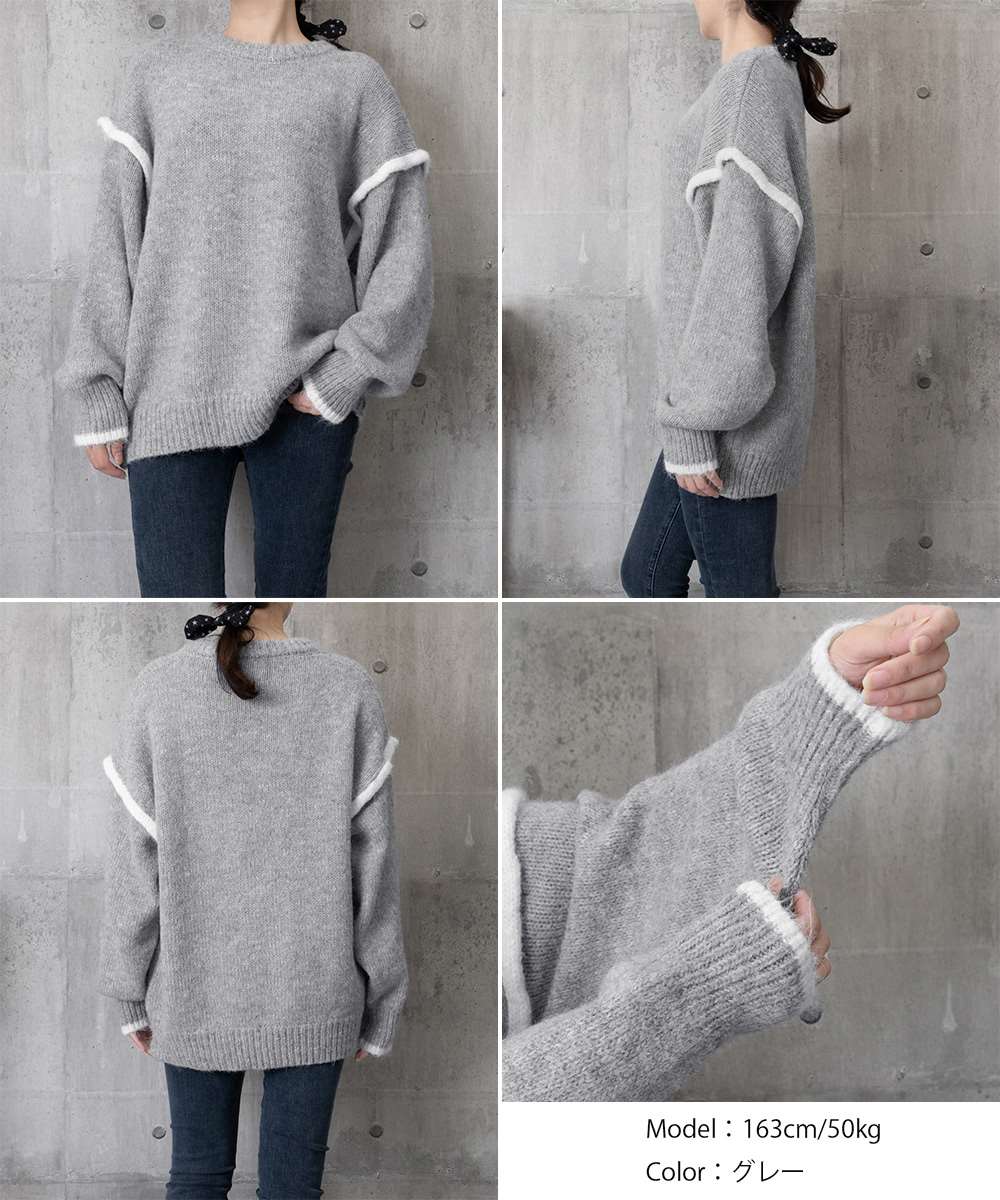 ゆったり ニット トップス ラウンドネック