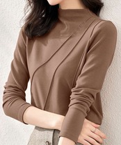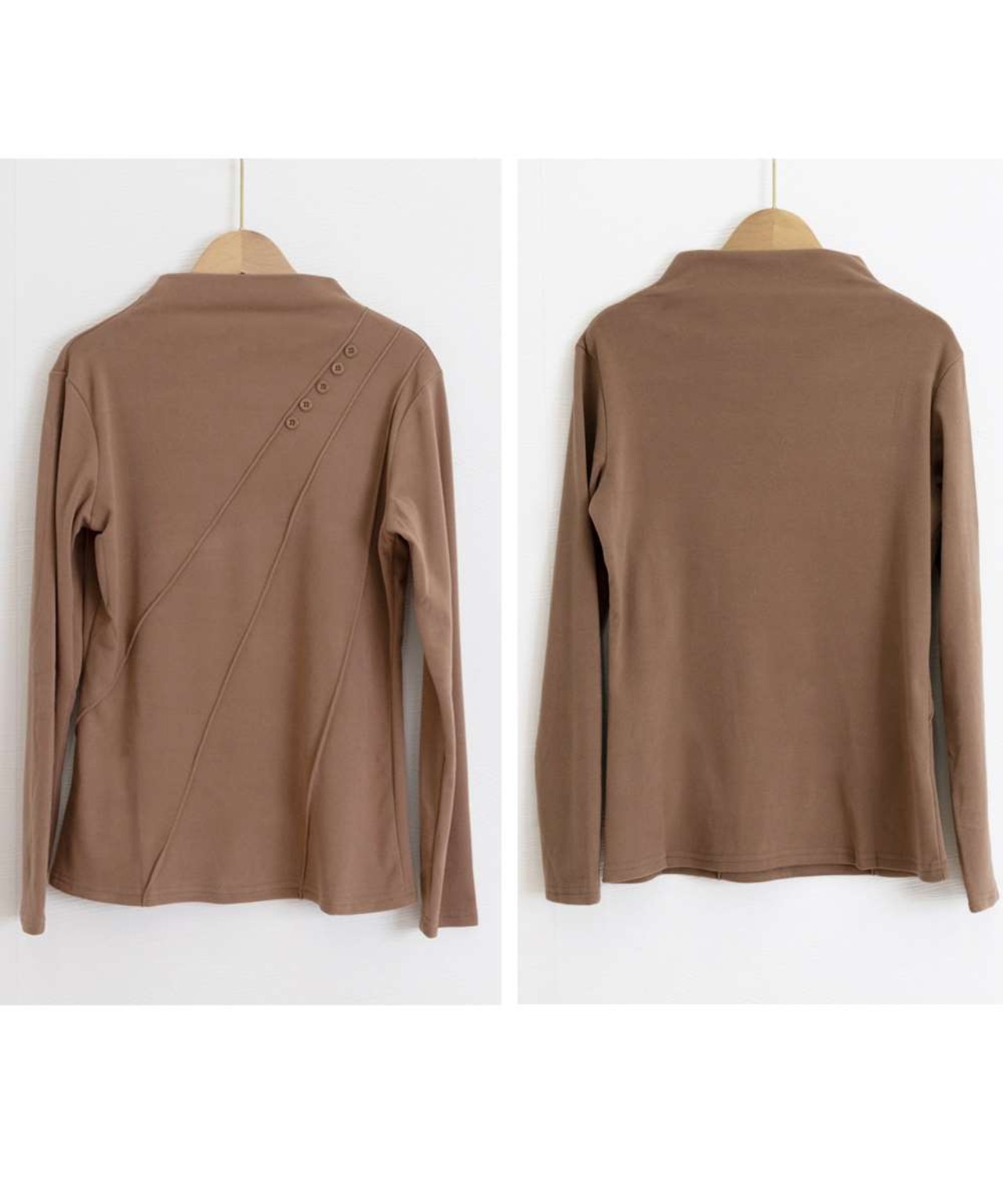 程よいプチハイネックが顔まわりをシャープに見せるカットソー。