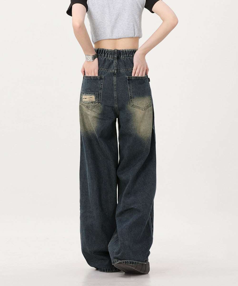 ダメージ バギー デニム パンツ ヴィンテージ風
