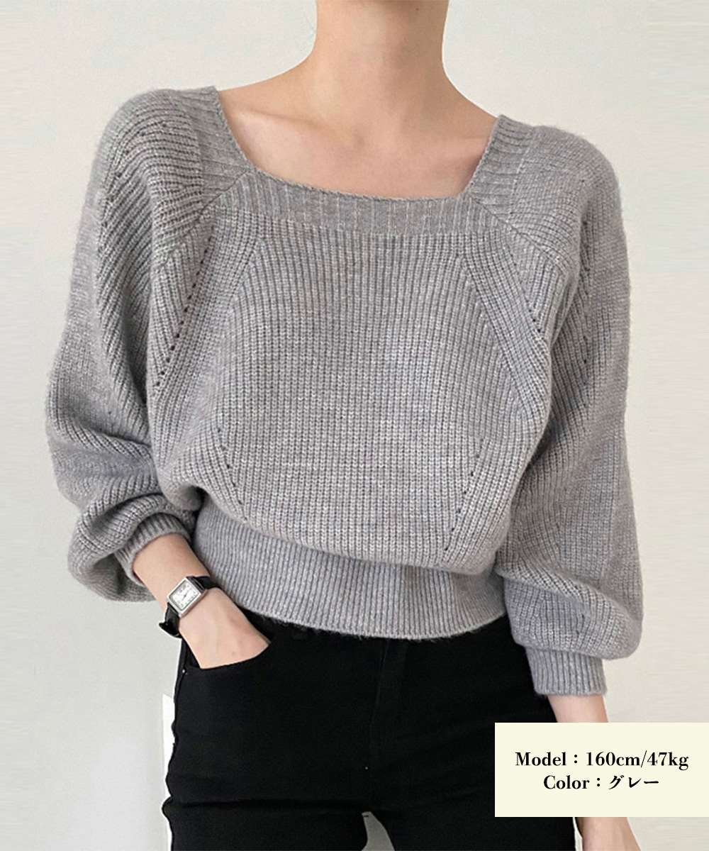 スクエアネックがデコルテを綺麗に見せ、女性らしい印象を演出。