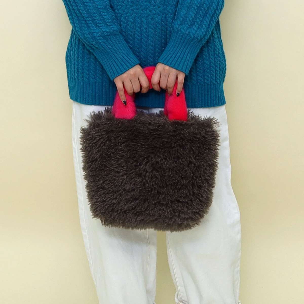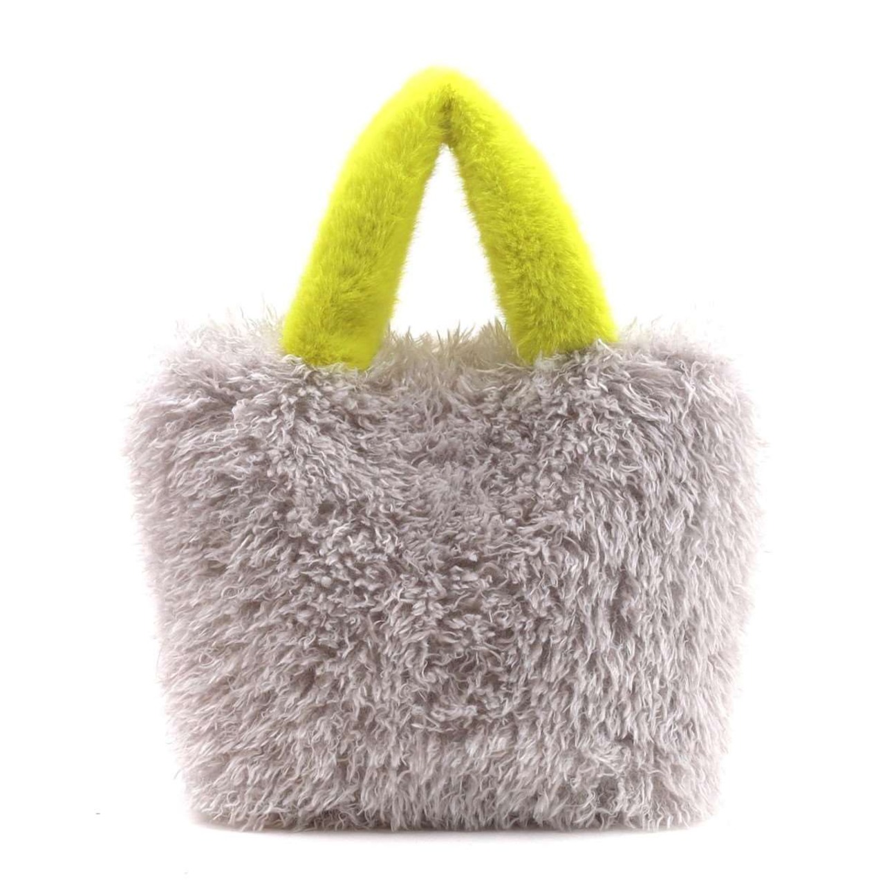 ハンドルにビビッドな配色を施したファーバッグ