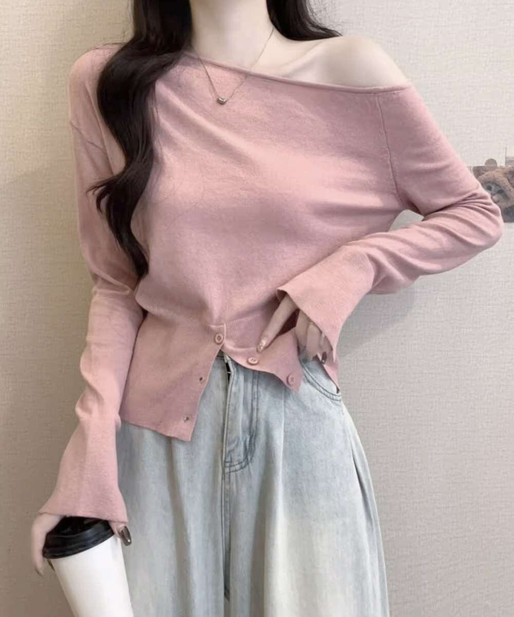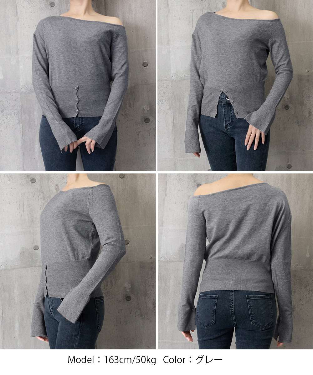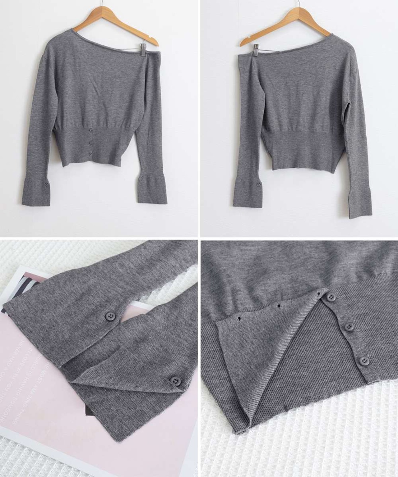 抜け感のあるシルエットが魅力のワンショルダーニットトップス。