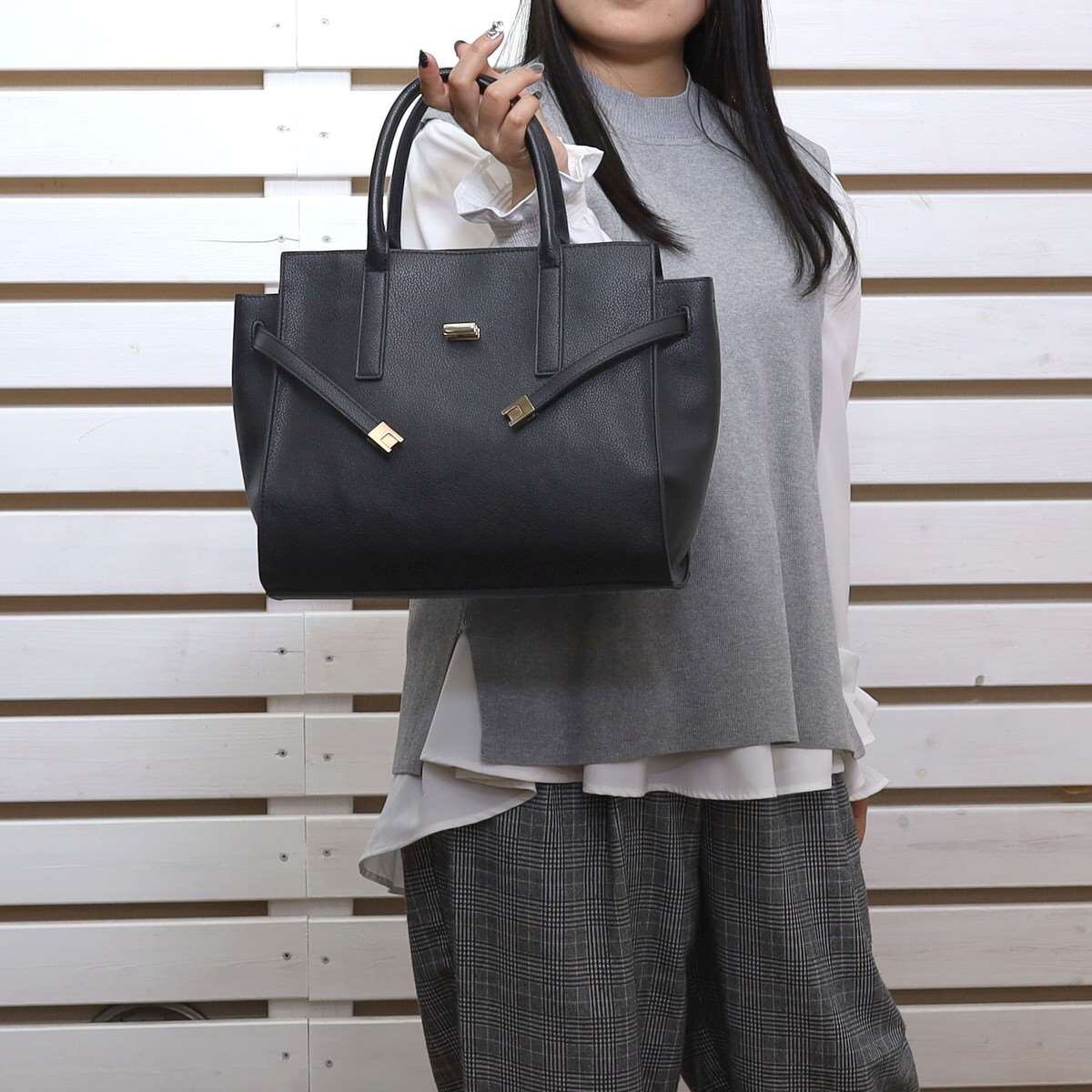 上品な質感のフェイクレザーを使用したベルテッドトートバッグ。