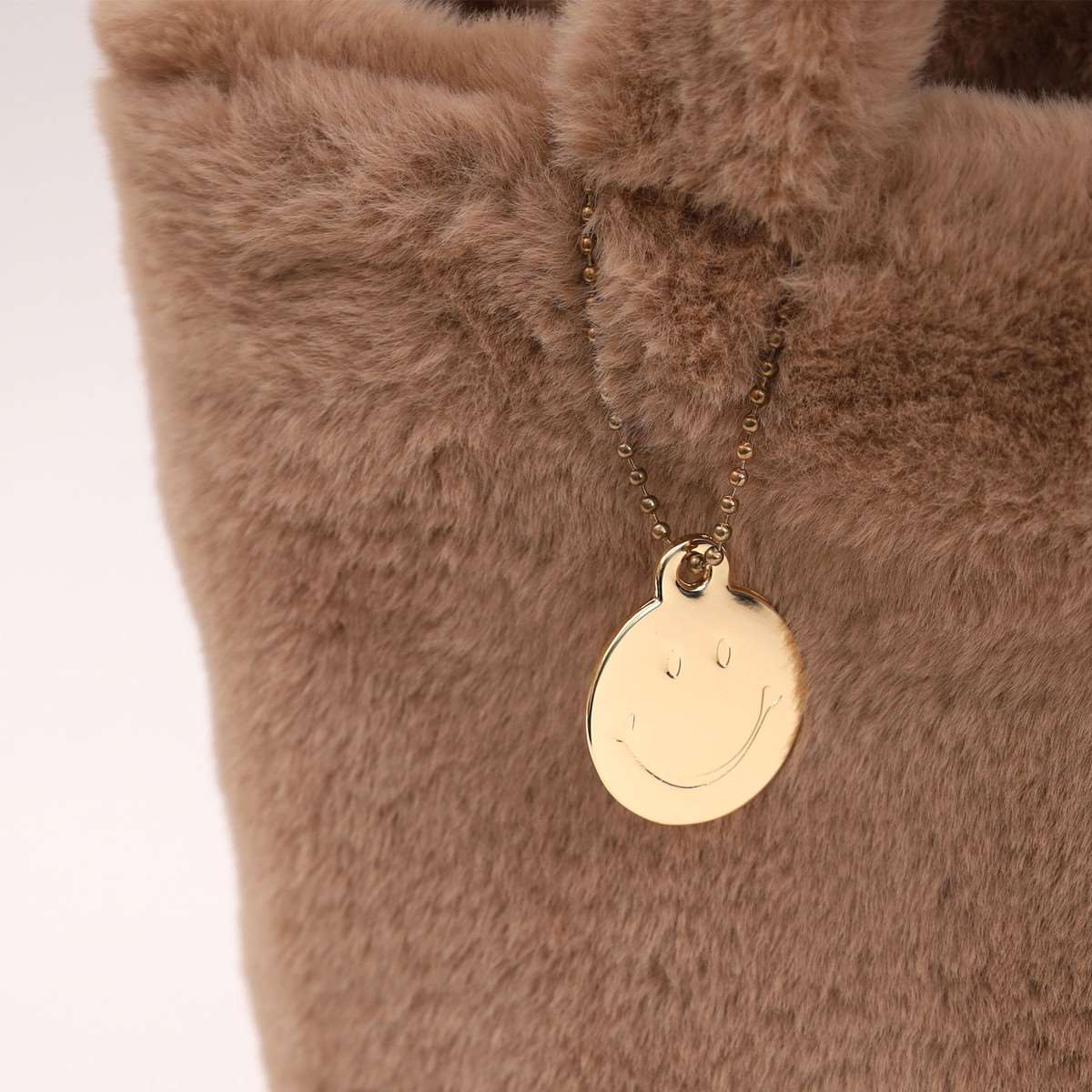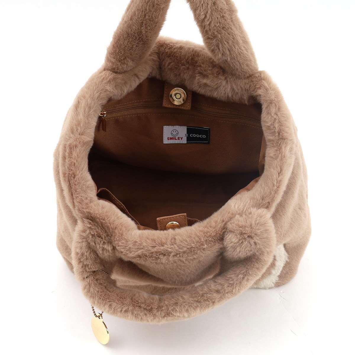 COOCO クーコ SMILEY チャーム付 エコファー フェイス トートバッグ