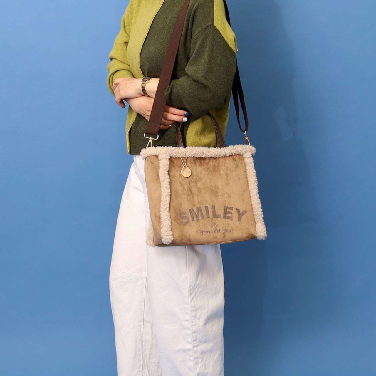 スクエア型のフェイクムートンSMILEYトートバッグが登場!
