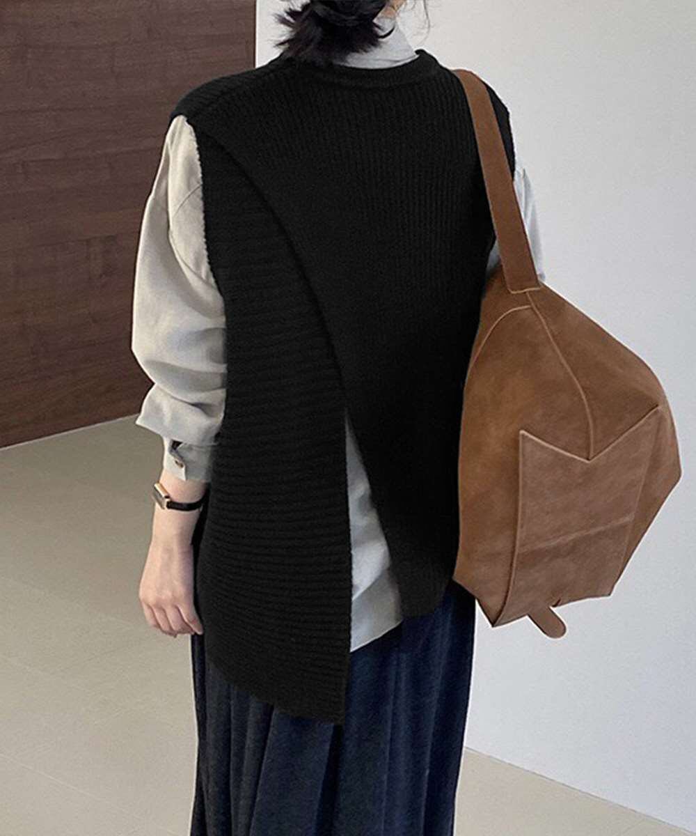前後スリット入りのデザインがおしゃれな印象を与える、秋冬新作のレディースニットベスト。