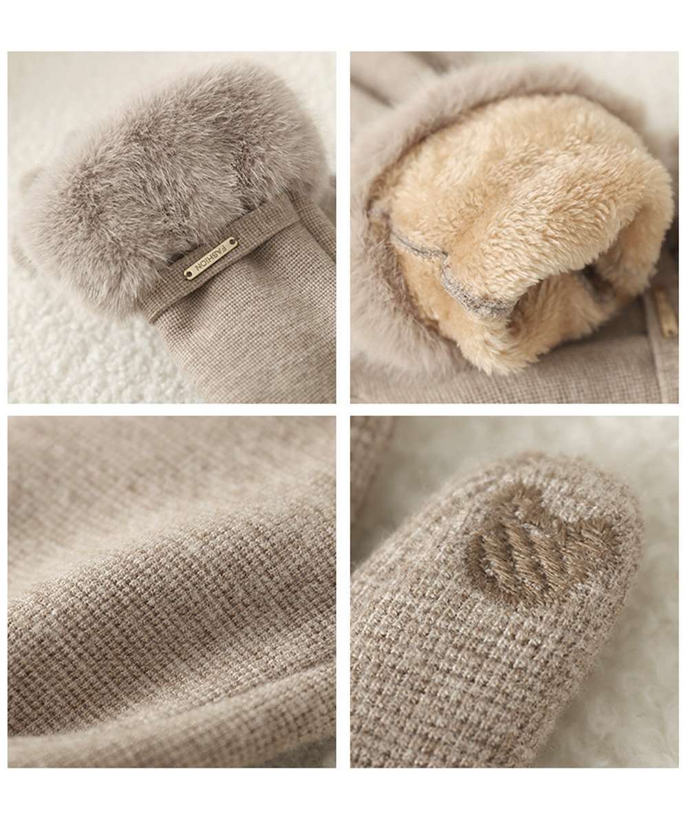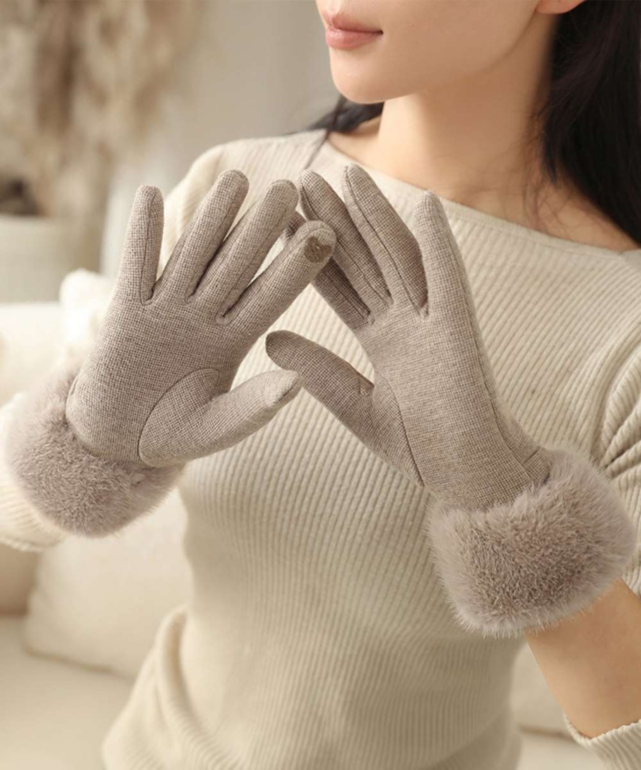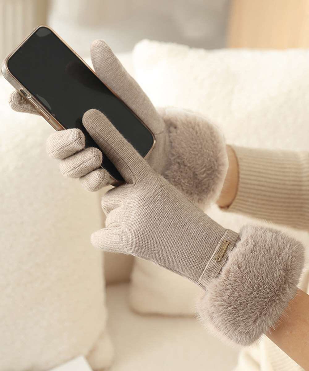 ふわふわフェイクファーがポイントのエレガントな裏起毛手袋。