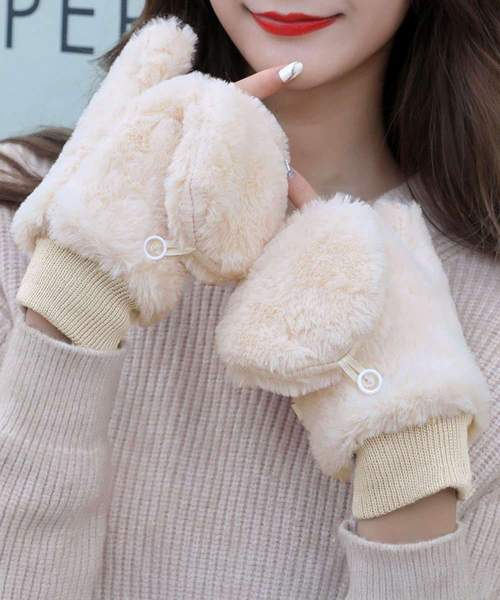 フワフワのエコファーで、シーズンライクに仕上げた裏起毛ミトングローブ。
