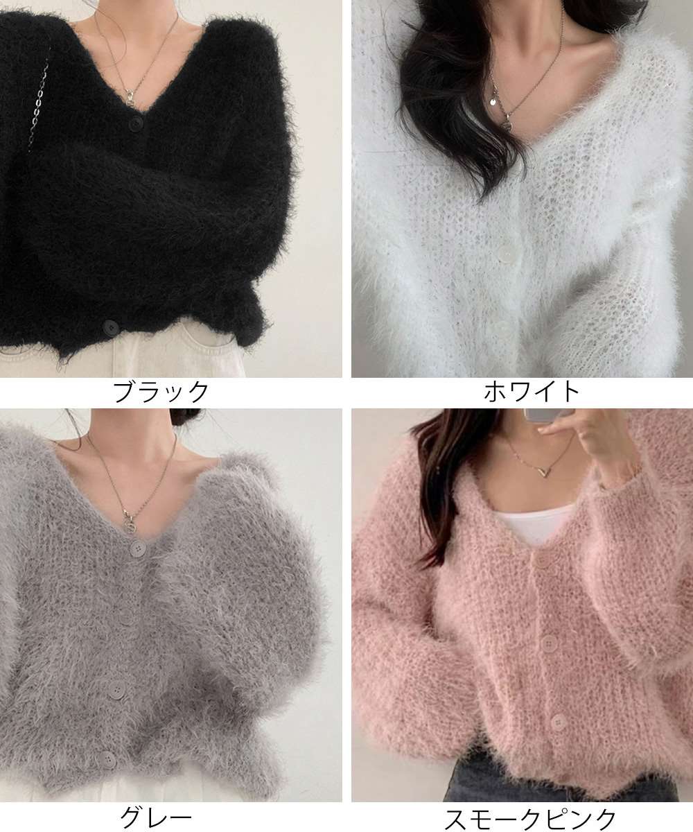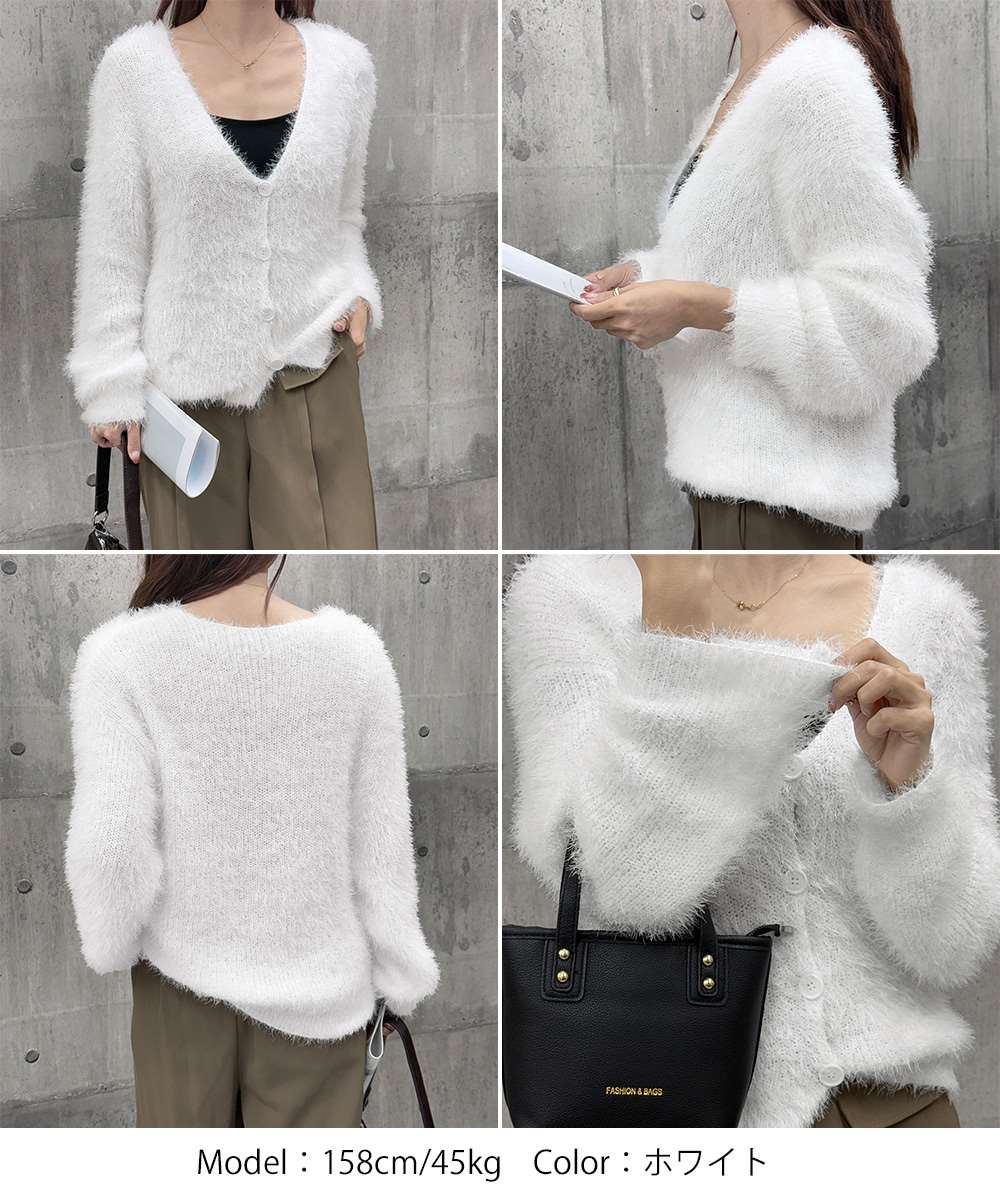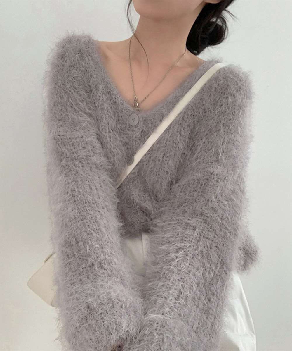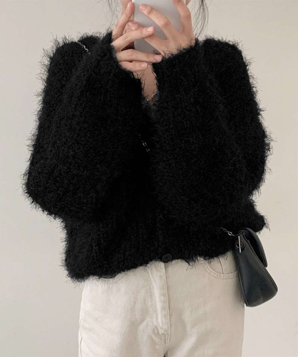 シャギー ニット カーディガン モヘアタッチ