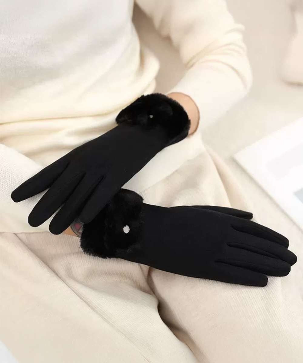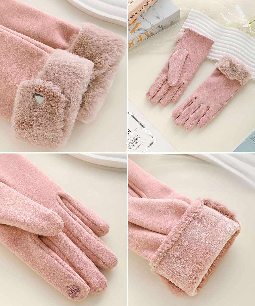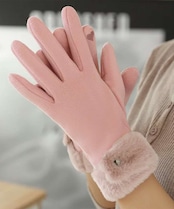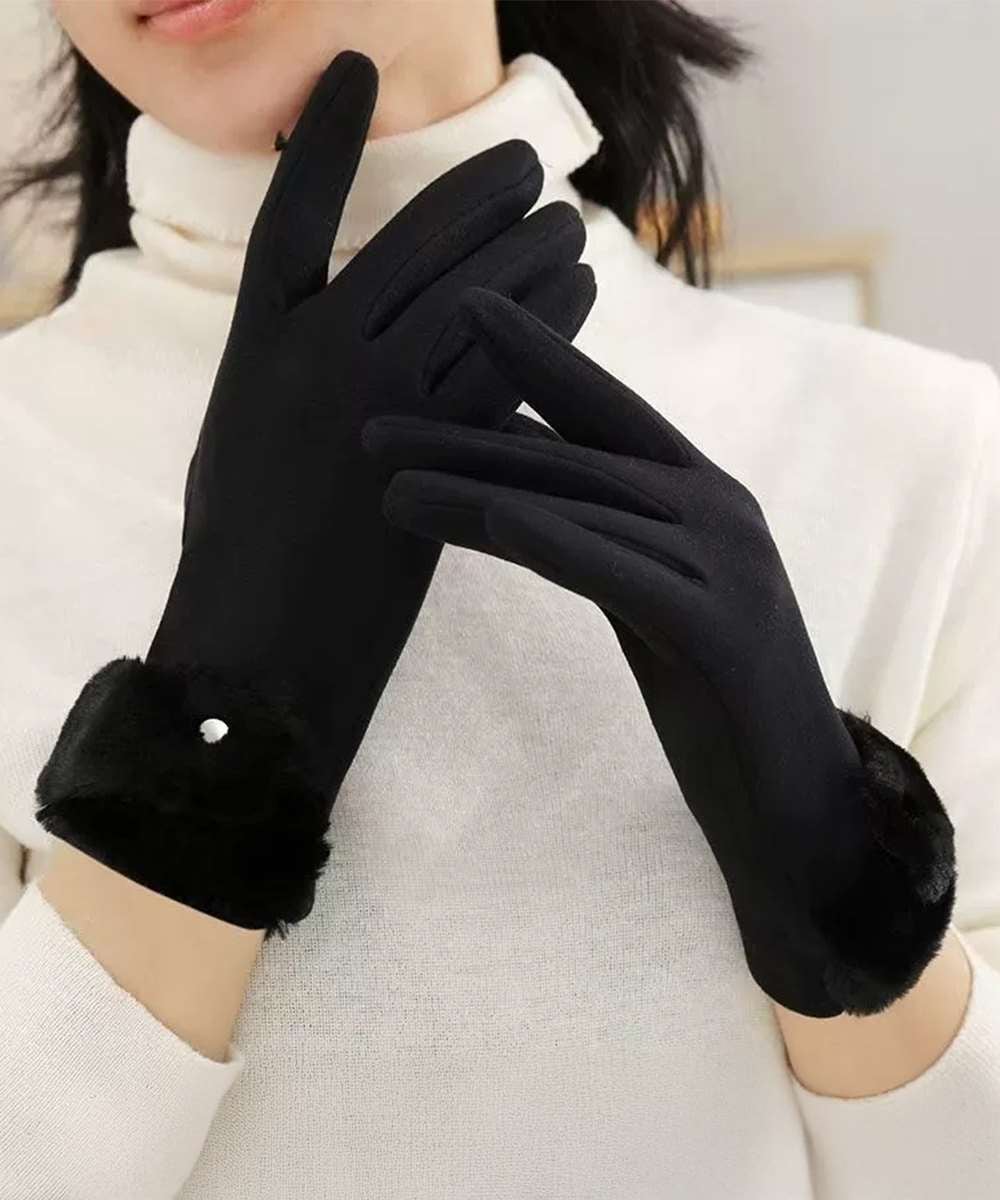 やわらかなスエード調素材にファーをあしらった、タッチパネル対応のあったか手袋。