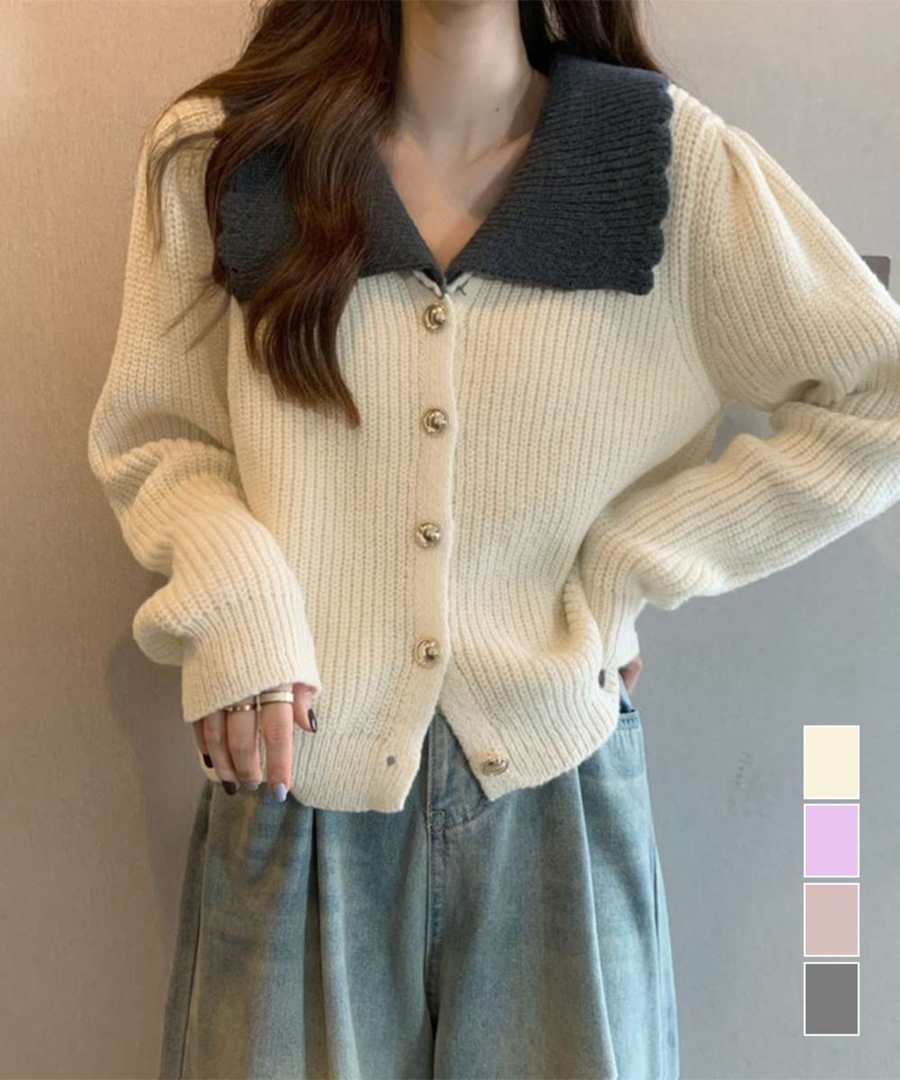 大きめの襟がポイントで、シンプルながらもおしゃれに決まります。