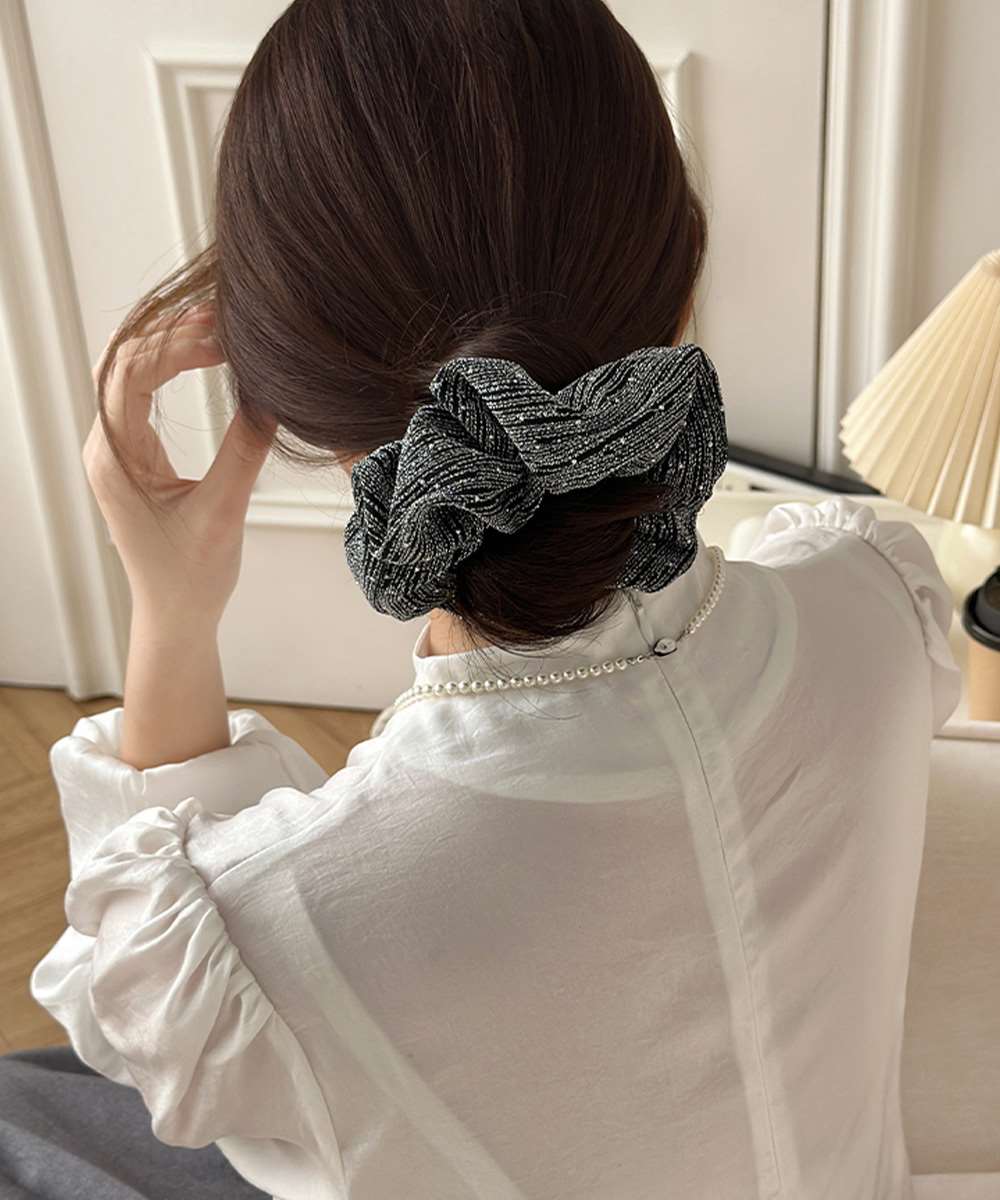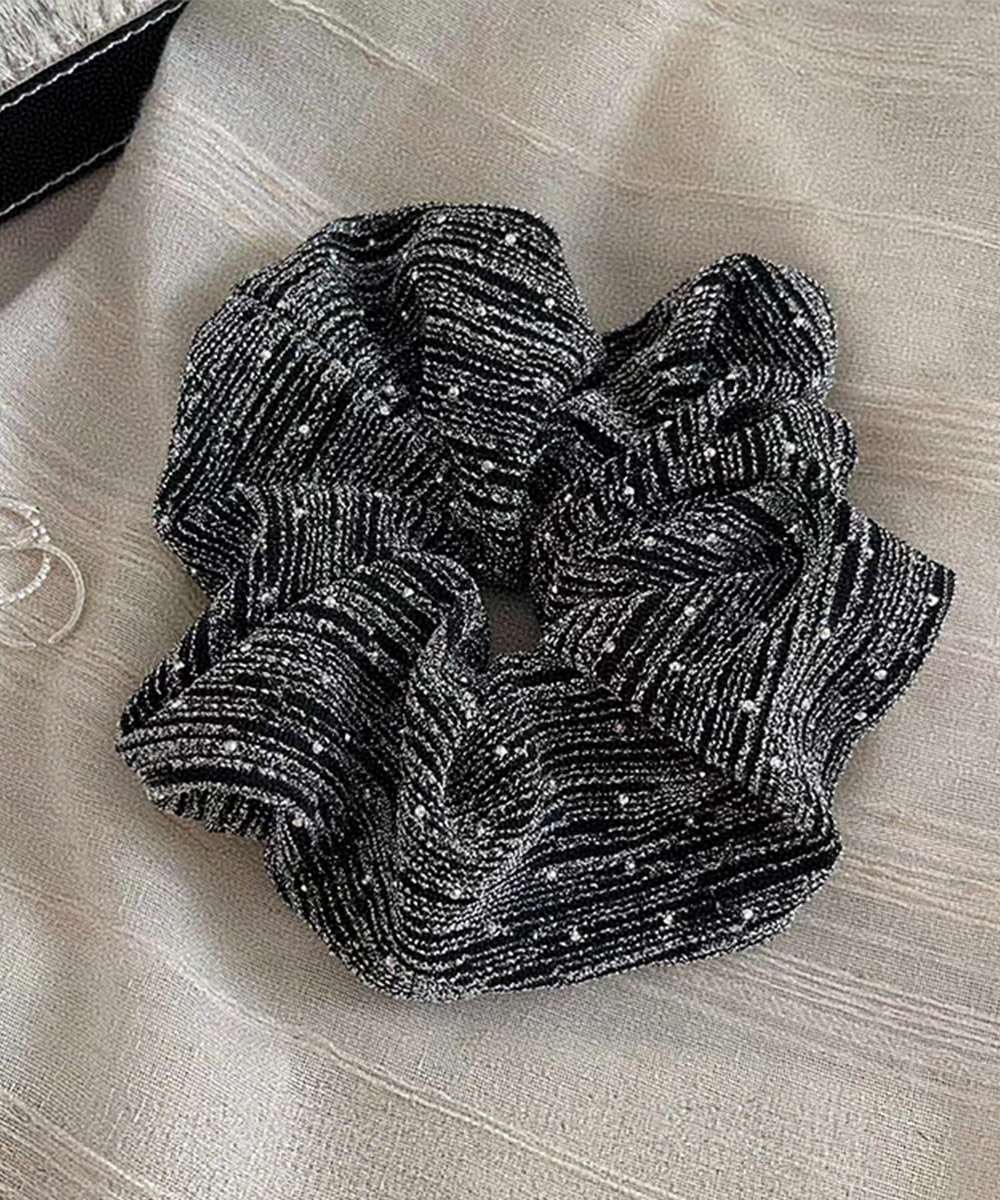 ラメ糸を織り込んだ上品なモノトーンデザインで、ヘアアレンジのアクセントにぴったり。