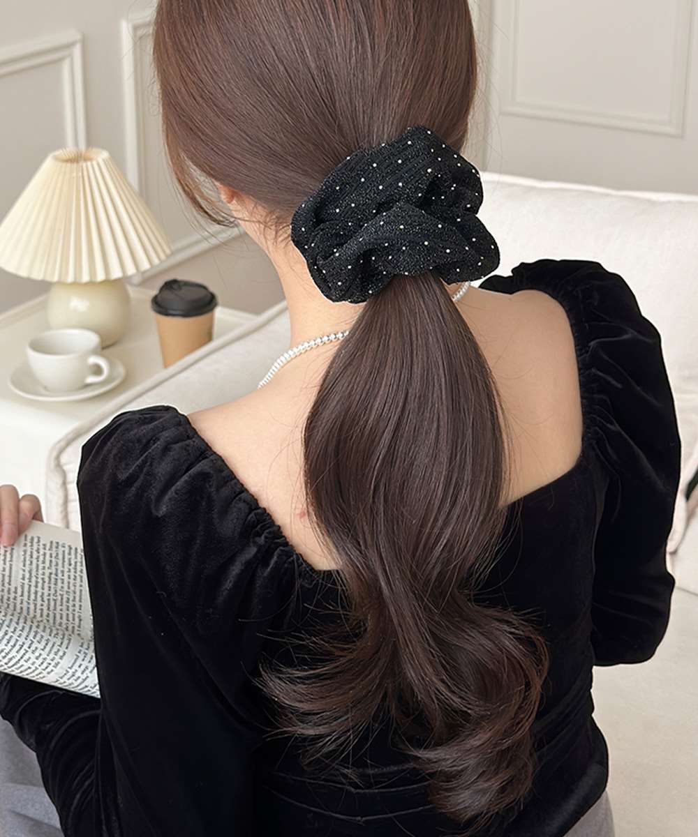 シンプルながら存在感のあるシュシュ。