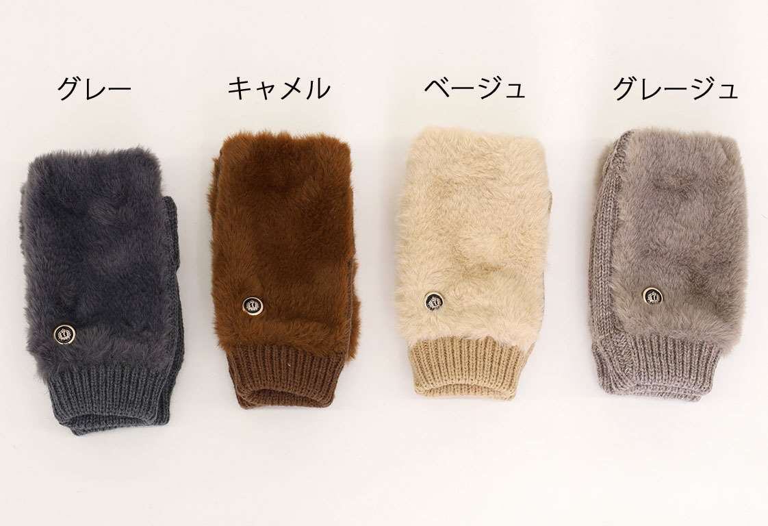 COOCO ボタン付き エコファー ニット カットオフ グローブ スマホ対応 手袋