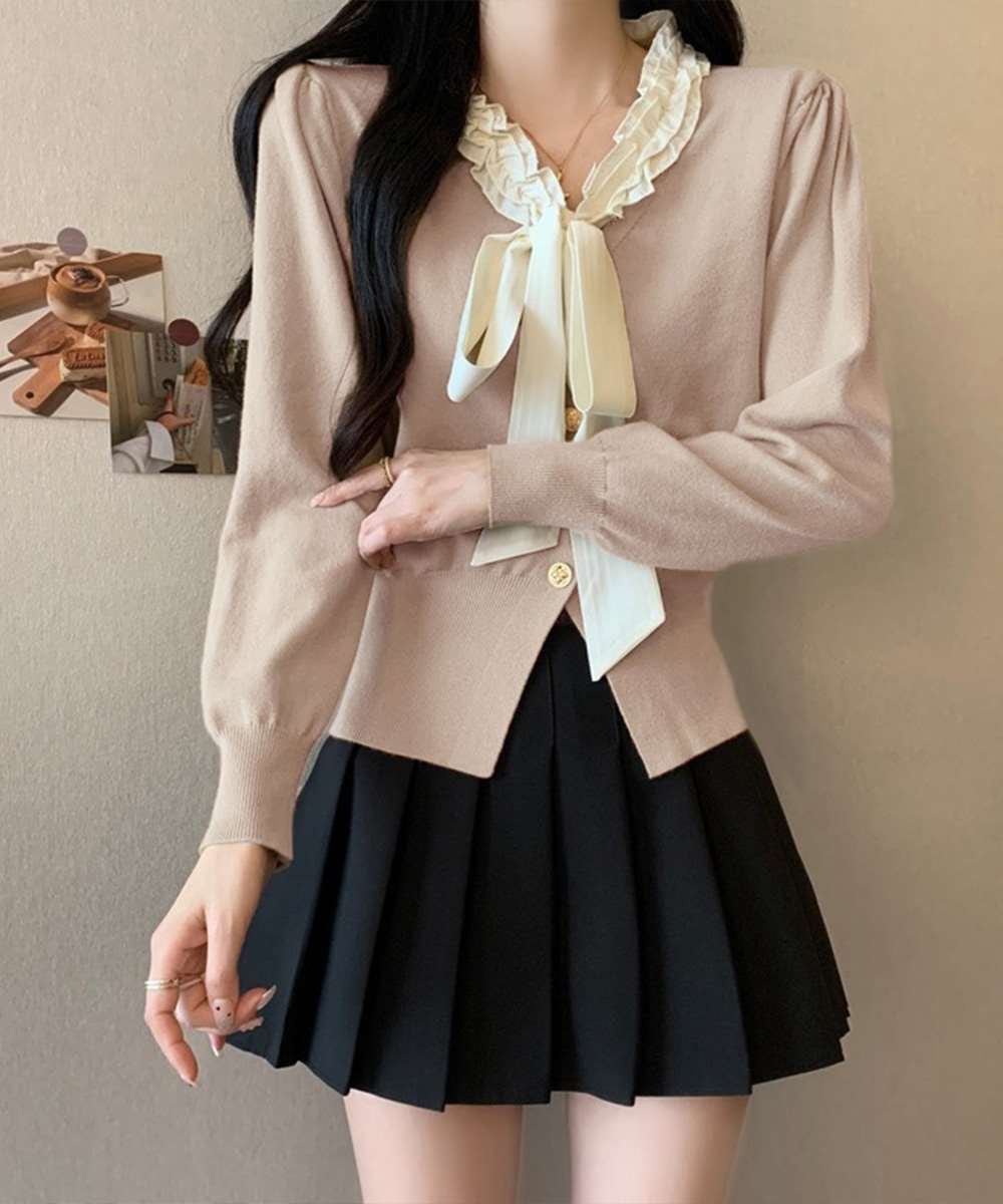 プリーツスカートや台形ミニスカートと合わせれば、ガーリーでエレガントなスタイリングが完成。