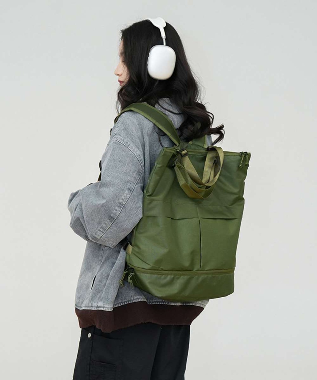 シーンに合わせて、リュック、肩掛け、トートバッグとして使える3WAYナイロンバッグ。