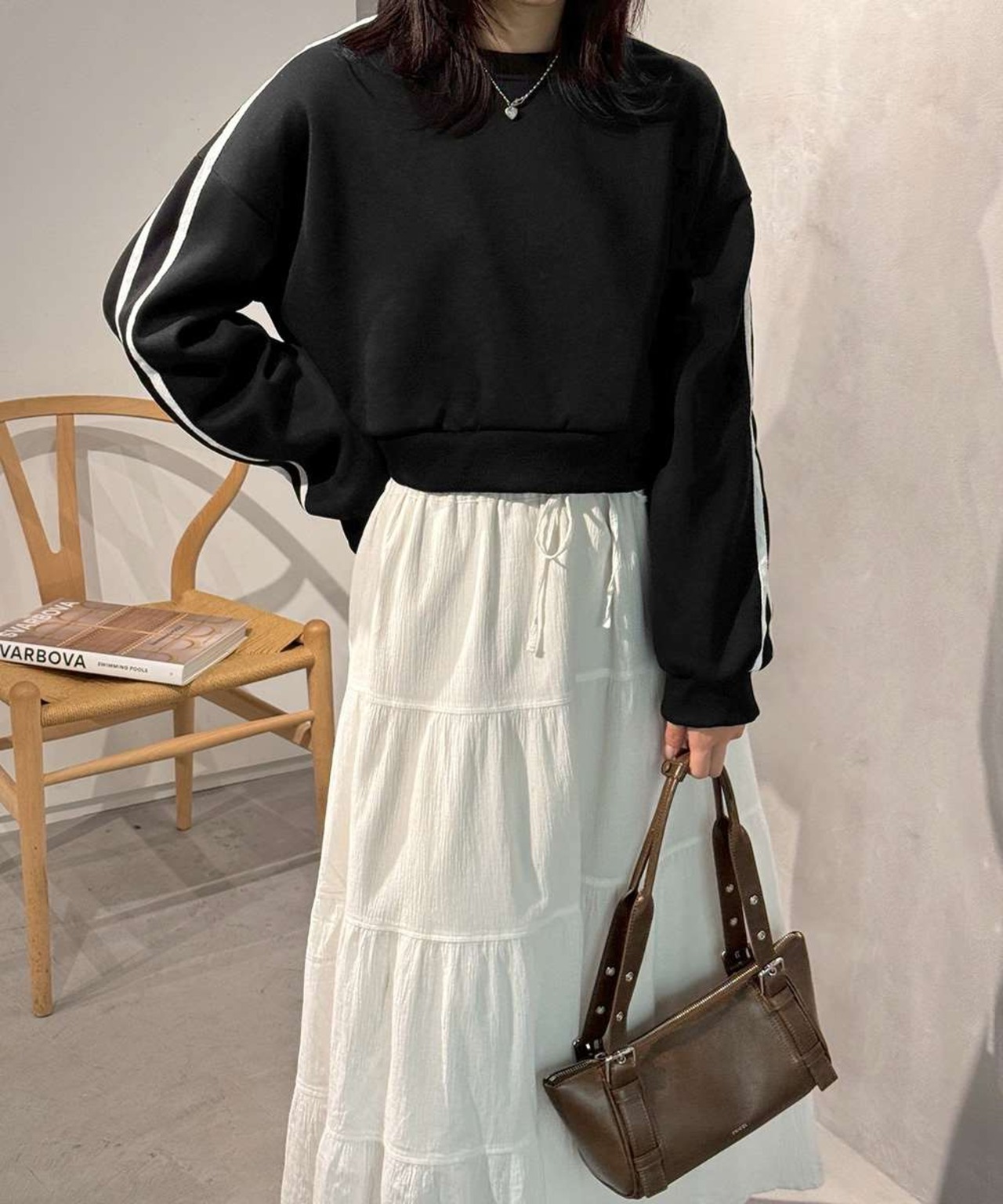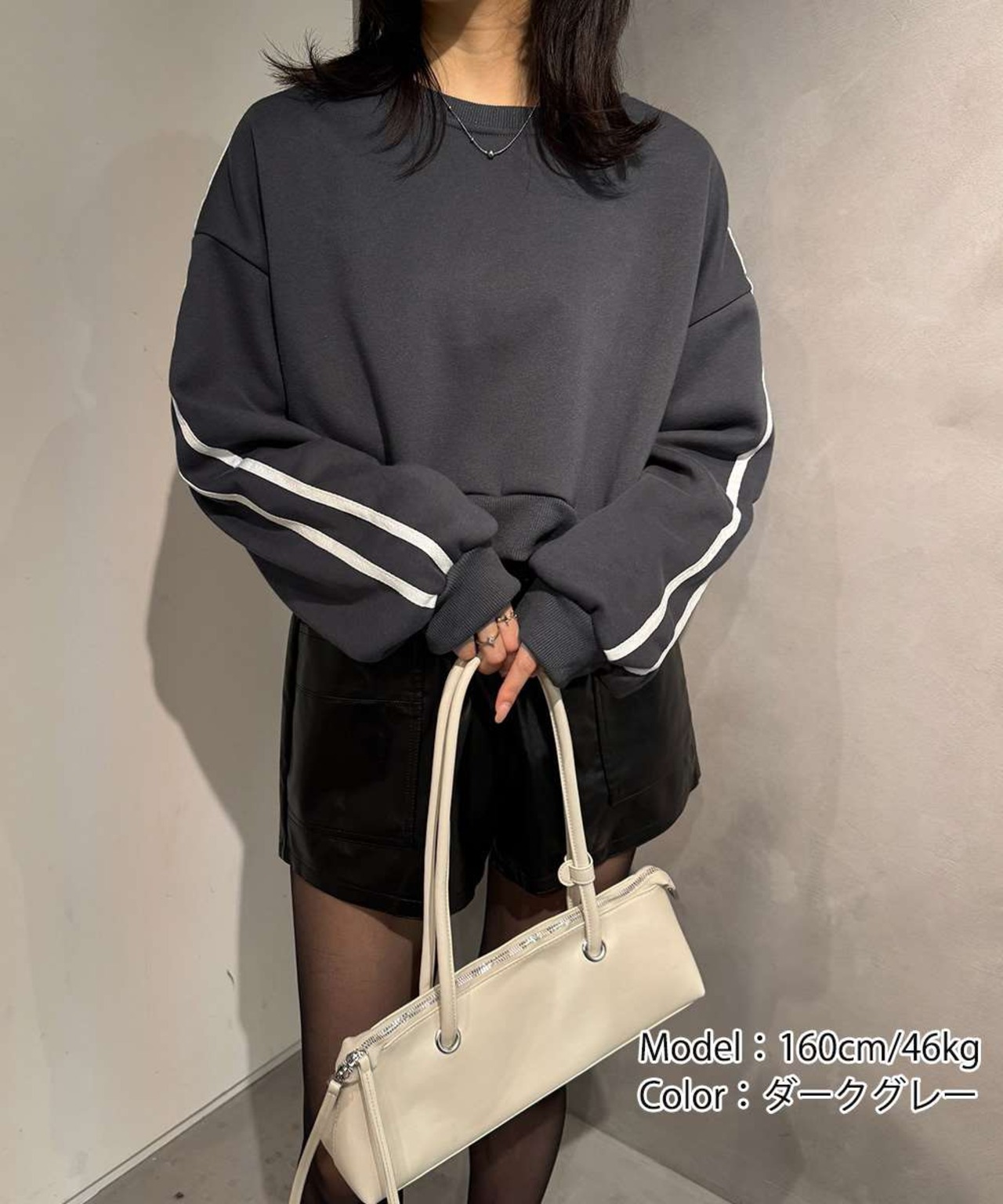 トレンドのストリートテイストを取り入れたショート丈デザインで、小柄な体型もバランスよく見せる。